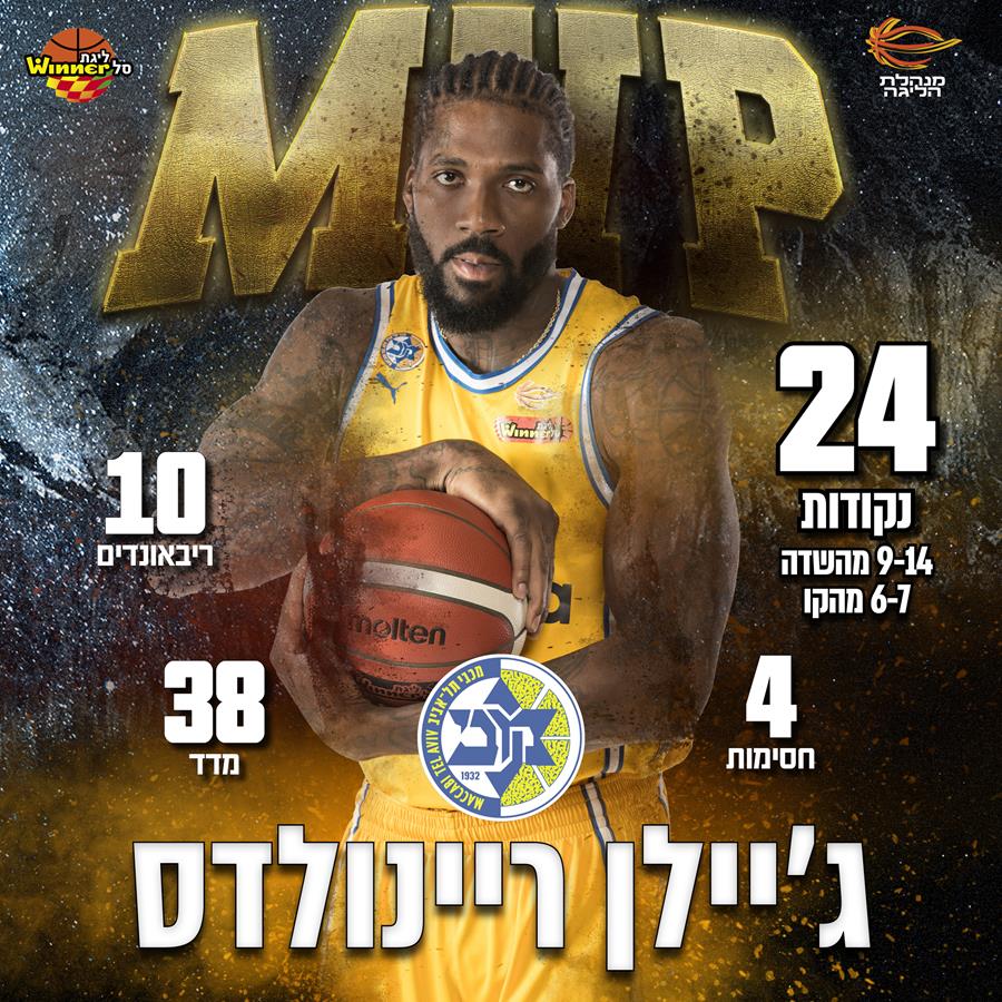 אחרי הפסדים בחולון ובמוסקבה, הדבר האחרון שרצו במכבי "Playtika" ת"א זה לפתוח שבוע עמוס נוסף עם הפסד שלישי בשישה מחזורים. האלופה מצאה את עצמה רודפת ברבע הרביעי מול הפועל "יוסי אברהמי" אילת ורק אחרי שתי הארכות הצליחה לנצח במותחן גדול, כאשר מרבית הקרדיט מגיע לג'יילן ריינולדס, שבהופעה אישית גדולה בשני צידי המגרש קטף את תואר מצטיין המחזור בליגת ווינר סל.
