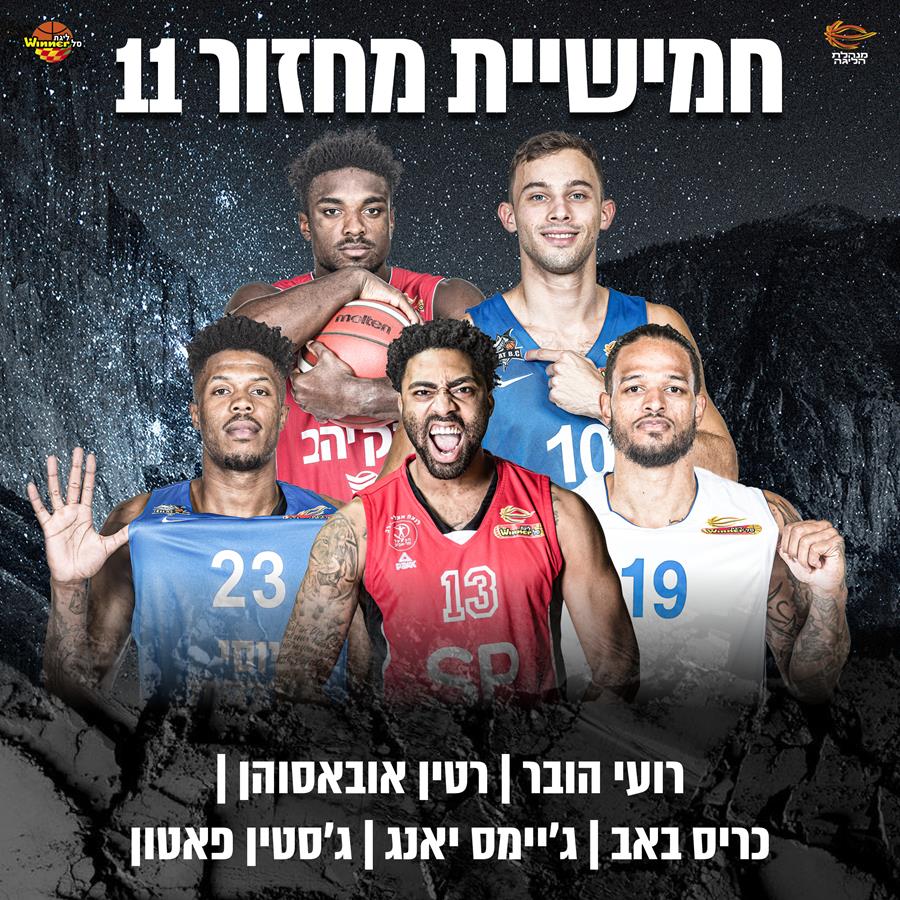 לצידו בחמישייה: חברו לקבוצה רועי הובר, ששבר את שיאי הקריירה שלו עם 20 נקודות ו-9 אסיסטים ורשם את הפלוס-מינוס הגבוה במגרש (15+); רטין אובאסוהן, שהיה הטוב בשורות הפועל "בנק יהב" ירושלים בניצחון הקשה על מכבי "אפי קפיטל" ראשל"צ עם 21 נקודות, 10 ריבאונדים, 7 אסיסטים, מדד 31 וסל שובר שוויון בשניות הסיום; כריס באב מבני "Ofek Dist" הרצליה שלהט מול הפועל גלבוע/גליל עם 33 נקודות, כולל 6 מ-9 מעבר לקשת; וג'יימס יאנג שקלע שיא עונתי של 26 נקודות עבור הפועל "SP מצר" ת"א נגד מכבי "Playtika" ת"א, כולל מהלך של סל ועבירה שהכריע את הדרבי.