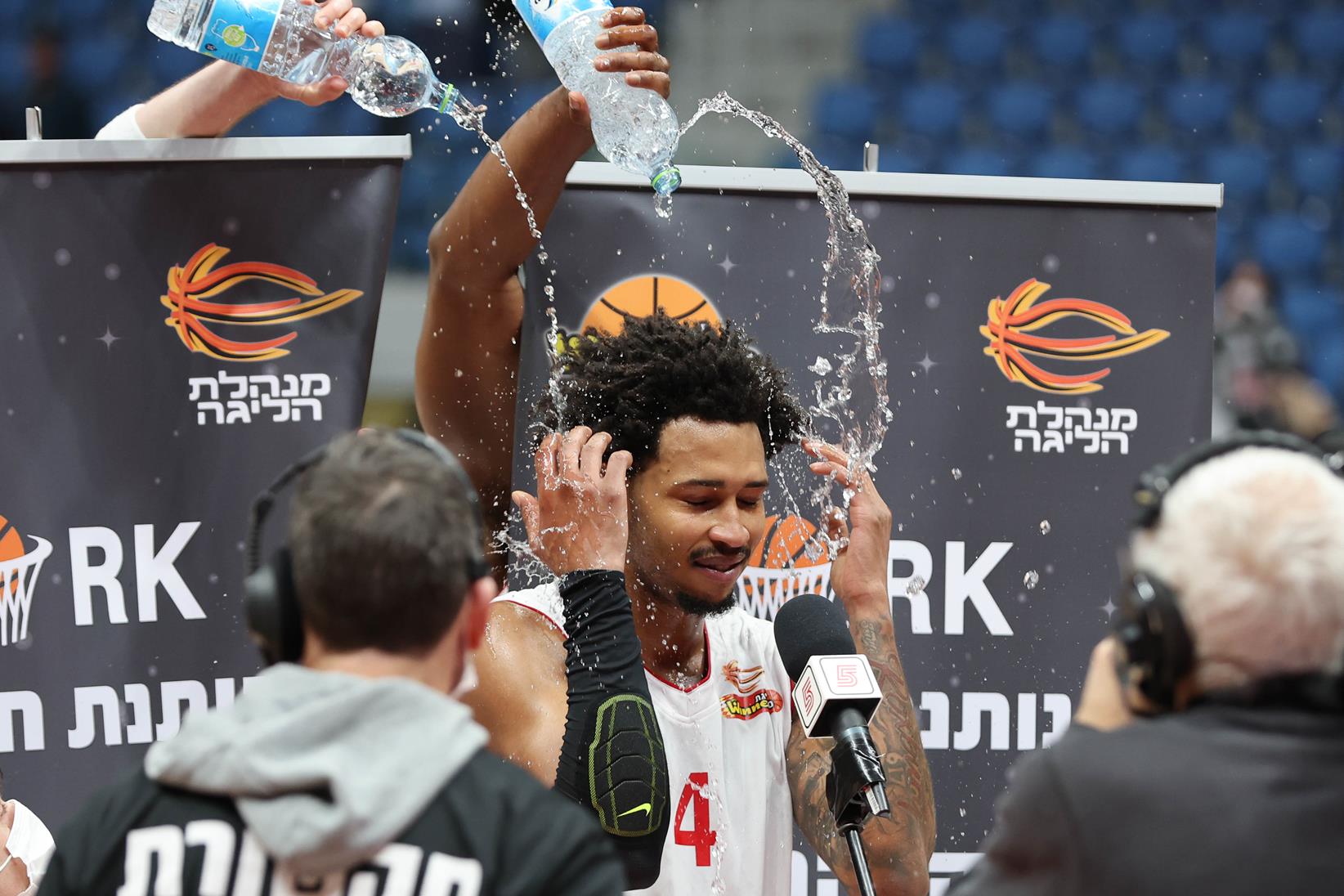 ה-MVP זוכה למקלחת בסיום (צילום: לירון מולדובן)