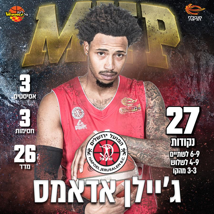 סל אחד ושתי שניות וחצי על השעון הפרידו בין מחזור נוסף בו הפועל "בנק יהב" ירושלים מחזיקה בפסגת ליגת ווינר סל – לבין ירידה למקום השלישי, עם נחיתות בשובר השוויון העונתי מול שתי המדורגות מעליה. ואז הגיע ג'יילן אדאמס: הוא עבר את כריס באב, הטעה גם את שון דאוסון ובקליעה קשה תוך כדי נפילה ובסיבוב העניק לאדומים ניצחון דרמטי על בני "Ofek Dist" הרצליה בקרב צמרת גדול בפיס ארנה.