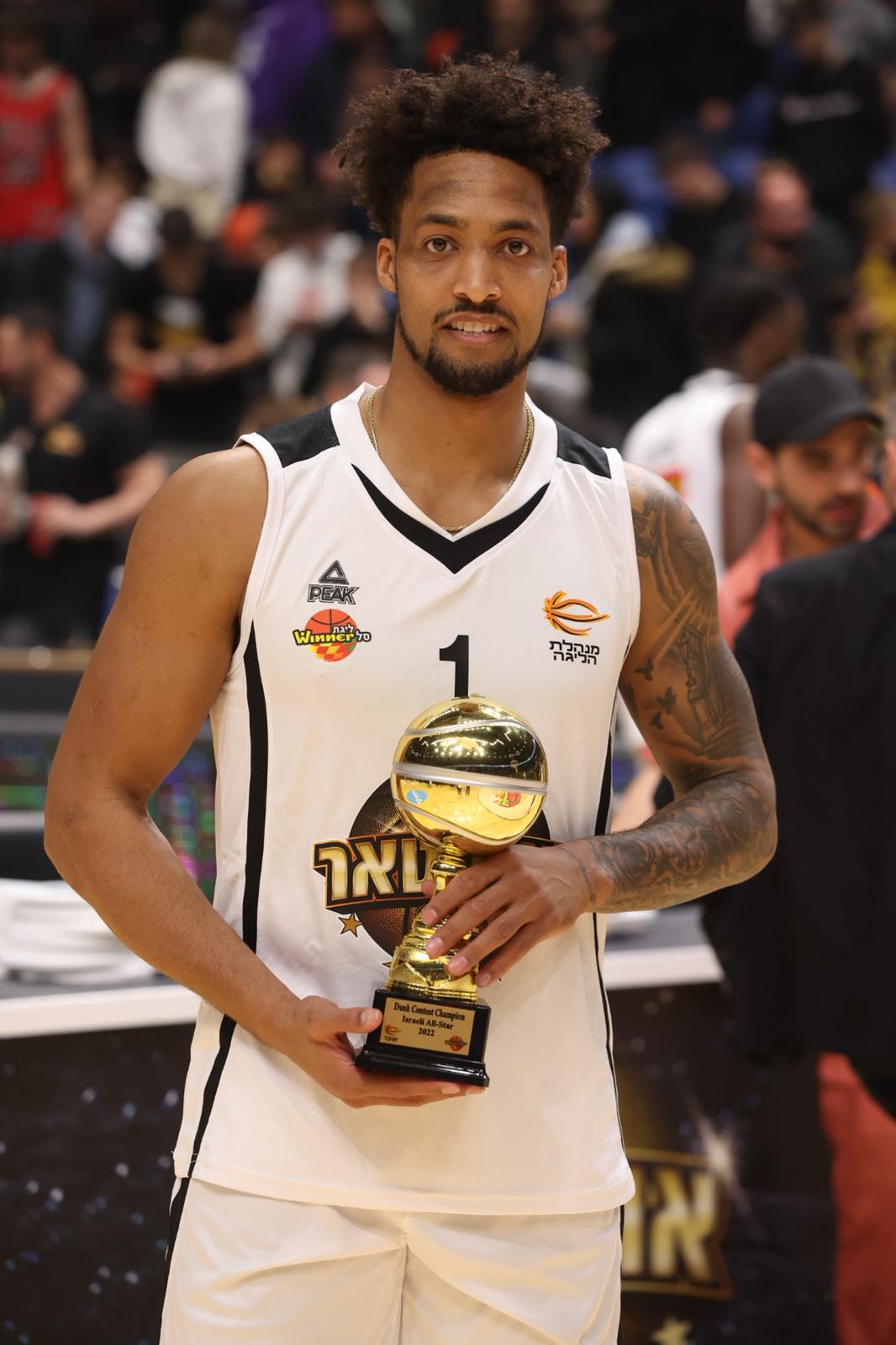 הפורוורד של הפועל "SP מצר" ת"א גבר בגמר על סקוטי ג'יימס מהפועל "בי-קיור לייזר" חיפה וזכה בצ'ק על סך 4,000 דולרים (צילומים: עודד קרני ולירון מולדובן)