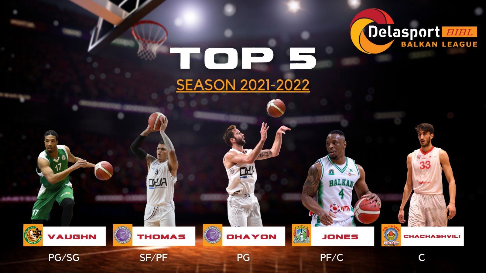 הליגה הבלקנית הודיעה על חמישיית מצטייני העונה, שכוללת שני שחקנים ישראלים: יוגב אוחיון מנהריה וגבריאל צ'אצ'אשווילי מגליל. מלבדם נבחרו גם קוואמה ווהן ממכבי חיפה, דאסטון תומאס מנהריה וכריסטיאן ג'ונס מבלקן.