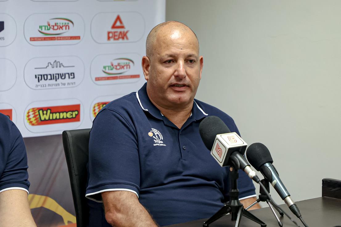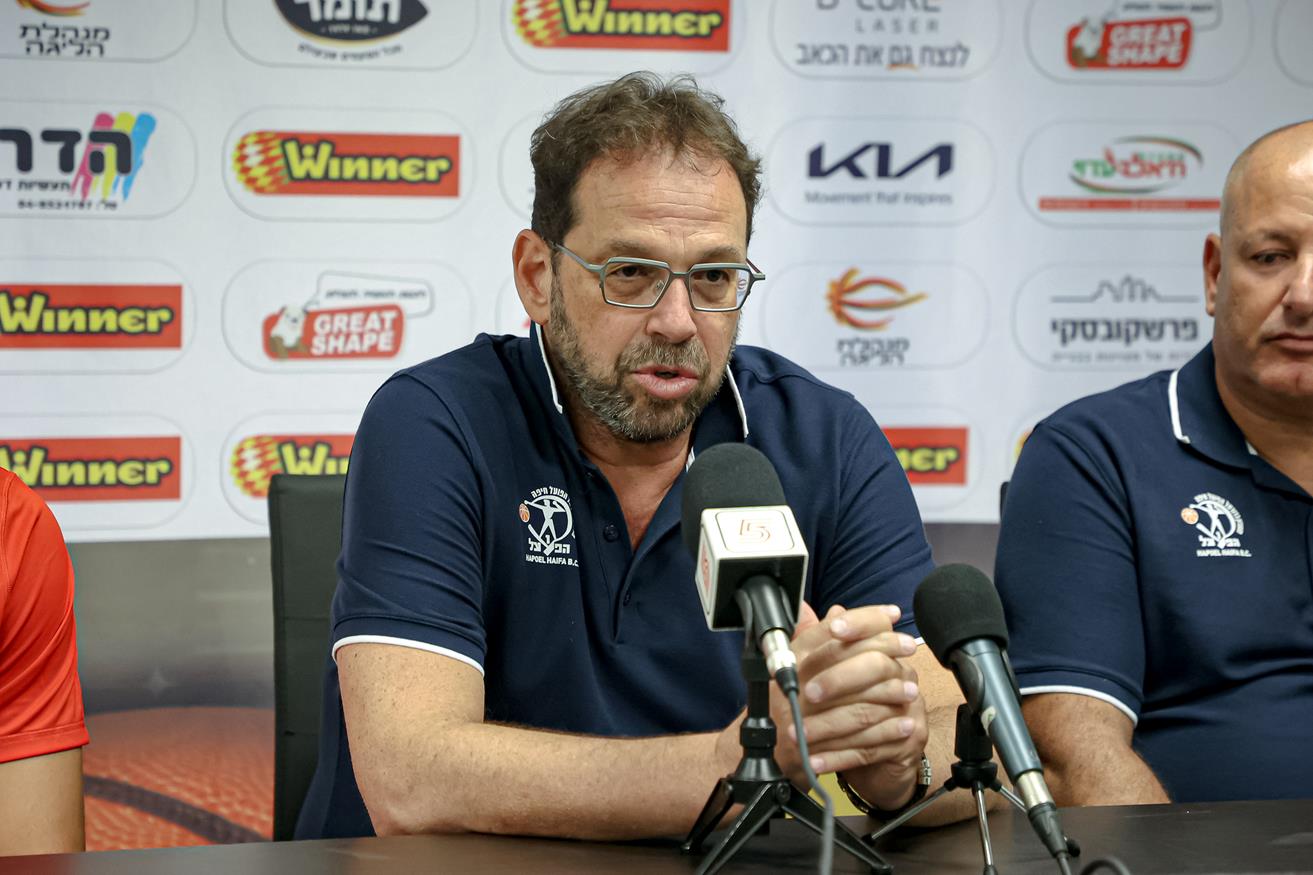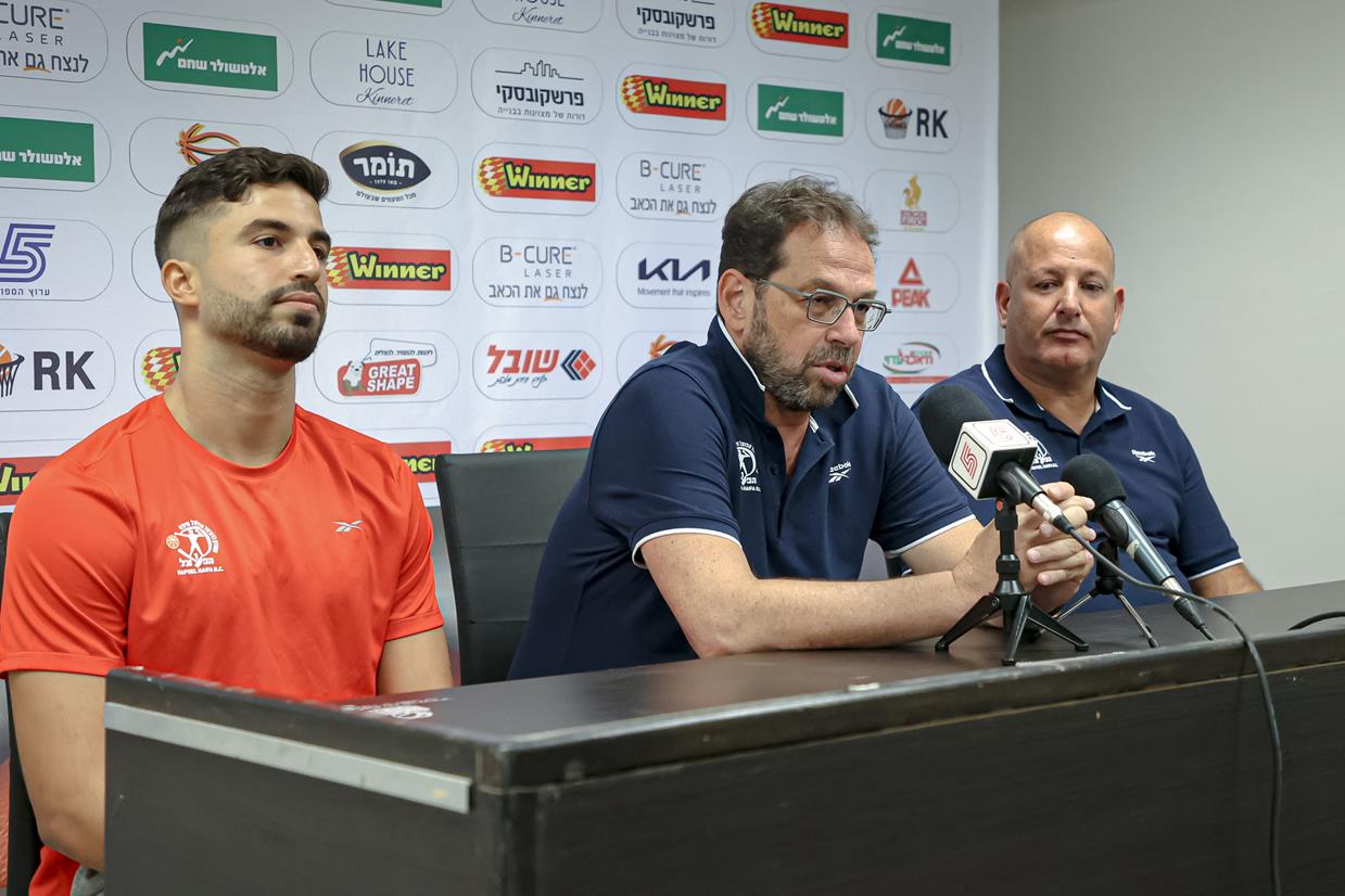 יו"ר הפועל "בי-קיור לייזר" חיפה, יובל רוסמן: "אמורים להיות אחת משש הבכירות". המאמן שרון דרוקר: "רוצים להביא את אירופה לחיפה" (צילום: לילך וייס-רוזנברג)