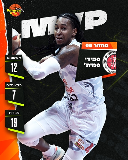 הגארד הוותיק הציג את משחק השיא שלו מאז ההגעה לבירה בניצחון הבית המשכנע על הפועל "נופר" גליל עליון: 19 נקודות, 5 מ-9 לשלוש, 7 ריבאונדים, 12 אסיסטים ומדד 29 – שווה לשיא הקריירה שלו בישראל. האדומים עברו את גבול 80 הנקודות רק פעם אחת לפני חלון הנבחרות, ובמשחק הראשון אחריו הגבירו את הקצב בהובלת סמית' ורשמו מספרי שיא בקליעה (89 נקודות), שלשות (11), אסיסטים (25) ומדד (25). סמית' לא רק ניהל את המשחק נהדר, הוא גם קלע 14 נקודות רצופות במהלך הרבע השני והחזיר לקבוצתו את היתרון בהפסקה.