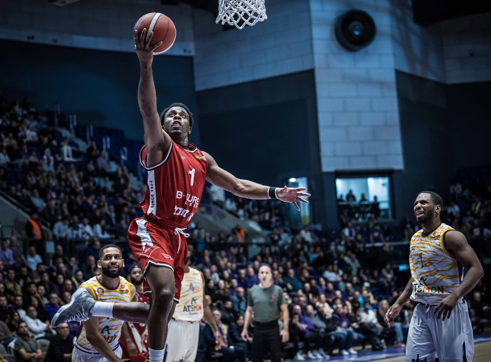 ריימן. שלוש שלשות ברבע הראשון (צילום: עודד קרני, באדיבות איגוד הכדורסל)