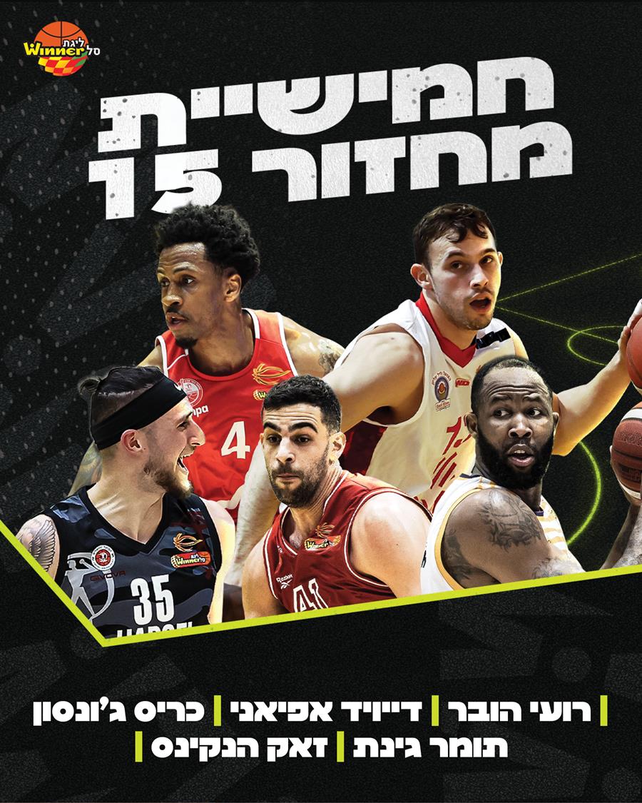 לצידו בחמישייה: רועי הובר שהעלה את הפועל "נופר" גליל עליון למקום החמישי עם 21 נקודות, 4 מ-8 לשלוש, 5 אסיסטים ומדד 22 נגד בני "Ofek Dist" הרצליה; כריס ג'ונסון, שרשם שיאי עונה של 24 נקודות, 3 מ-3 לשלוש ומדד 30 בניצחון הפועל "עצמון" חולון על הפועל גלבוע גליל; תומר גינת, שהצטיין בניצחון הפועל "Vegan Friendly" ת"א בהארכה בלב המושבה עם 18 נקודות, 5 אסיסטים ומהלכים גדולים במאני טיים; וזאק הנקינס, שחגג בבגין עם 22 נקודות, 10 ריבאונדים ולא פחות משבעה דאנקים עבור הפועל "בנק יהב" ירושלים נגד הפועל "יוסי אברהמי" אילת.