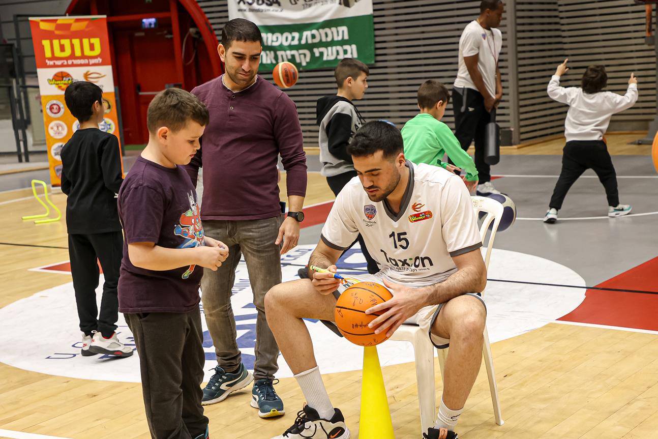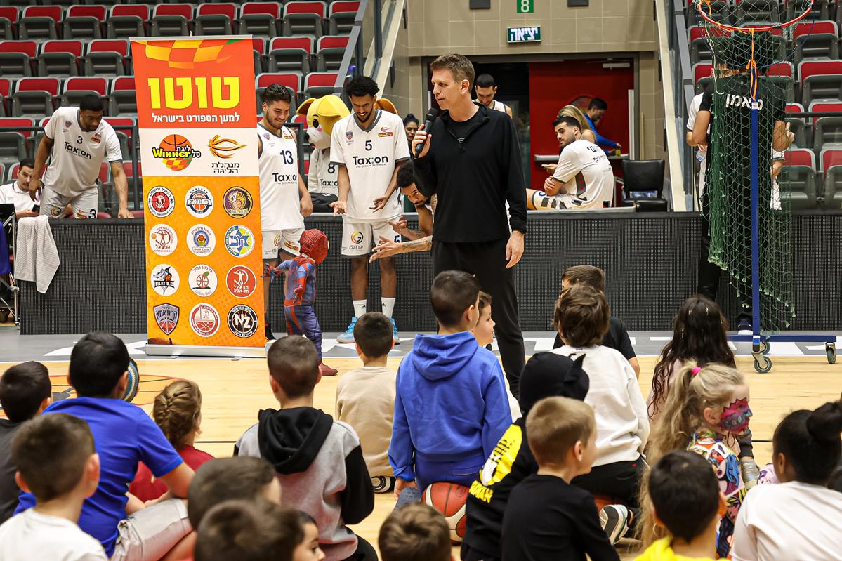 עירוני "Tax:on" קריית אתא ערכה הפנינג פורימי במסגרת מיזם "הטוטו למען הספורט בישראל". הקפטן עידו דוידי: "חיבור שחשוב לנו מאוד" (צילום: לילך וייס-רוזנברג)