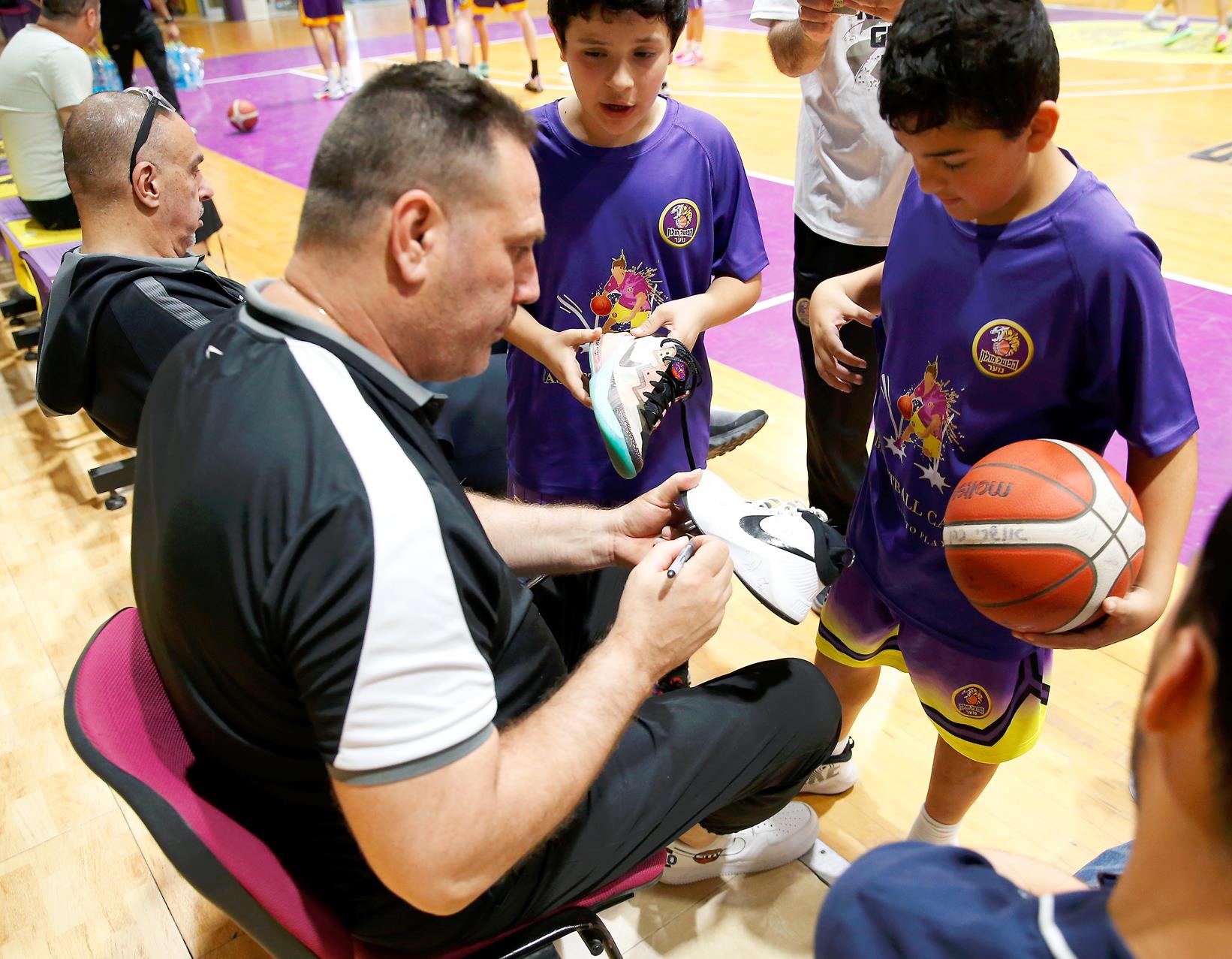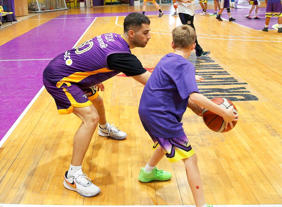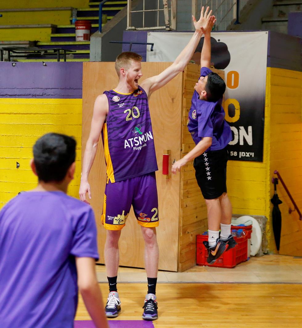 גיא גודס, מאמן הקבוצה, הרצה בפני הילדים על חשיבות העבודה הקשה ונתן להם כדוגמא את הגארד ניב משגב, שטיפס את דרכו בהדרגה מליגה א' עד לעמדת מפתח בשורות האלופה ולסגל נבחרת ישראל. השחקנים וצוות האימון התחלקו לתחנות, בהן ניסו הילדים בין היתר לקלוע מעל שחקן ההגנה של השנתיים האחרונות כריס ג'ונסון, למדו על החזקת כדור ומסירה ממלך האסיסטים של ליגת האלופות ג'ו רגלנד וניסו לקפוץ לגובה של היידן דלטון וג'אבין דלורייה.