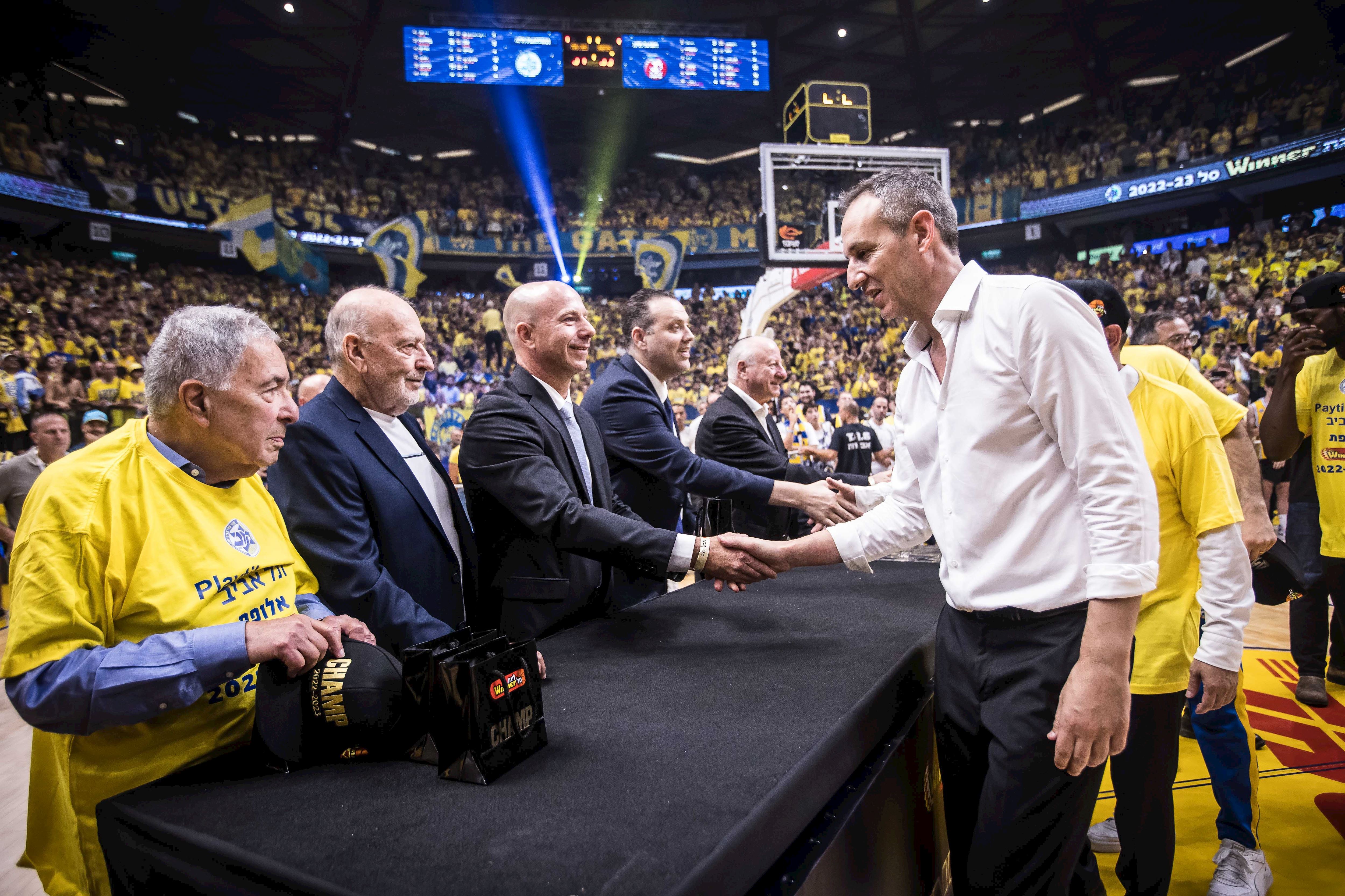במכבי "Playtika" תל אביב חוגגים את האליפות ה-56. עודד קטש: "עברנו משוכה קשה עם הרבה אופי". ווייד בולדווין: "אני פשוט מאושר" (צילום: עודד קרני)