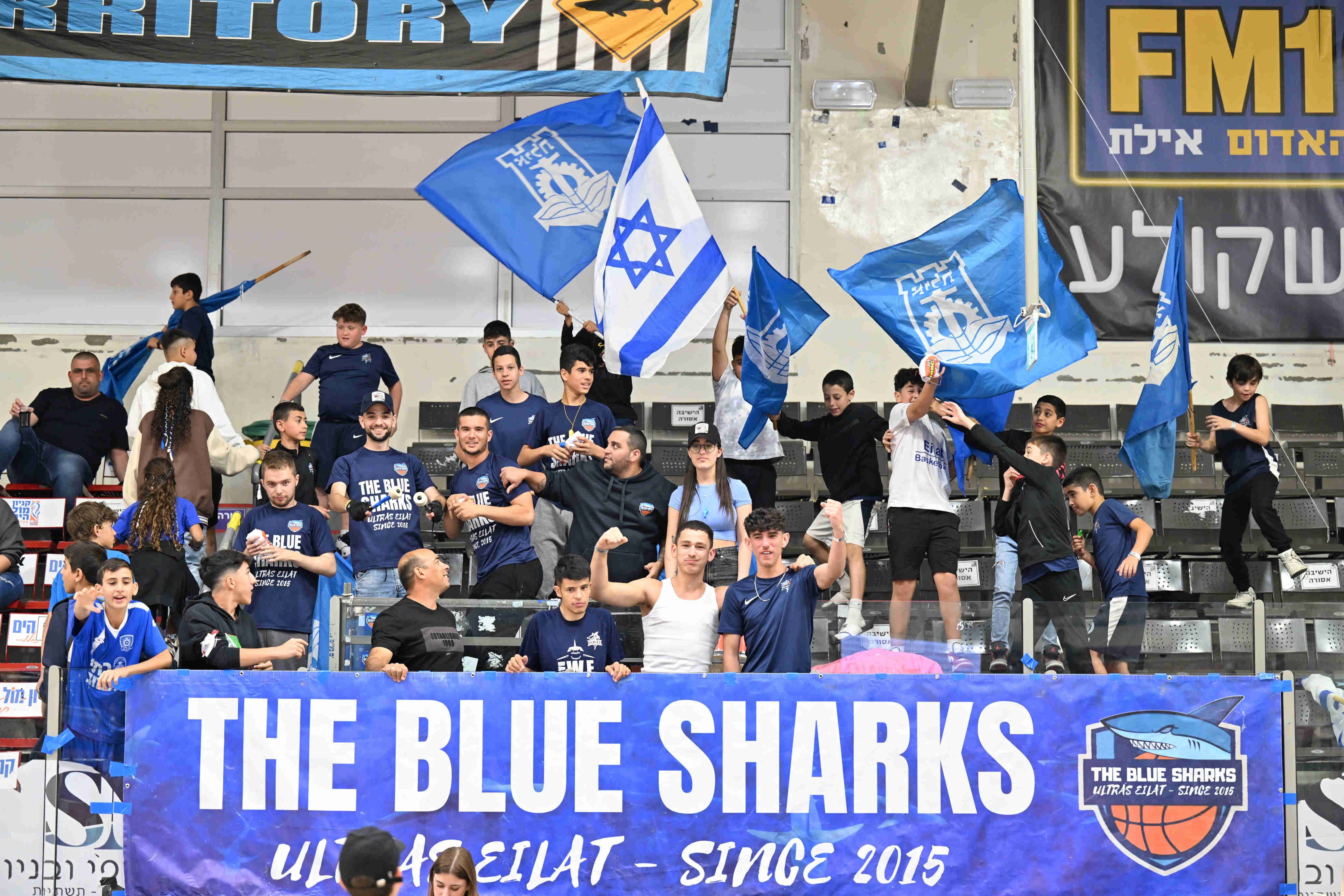 אוהדי אילת בפעולה באולם בגין, הבית החדש של ז'ורנו