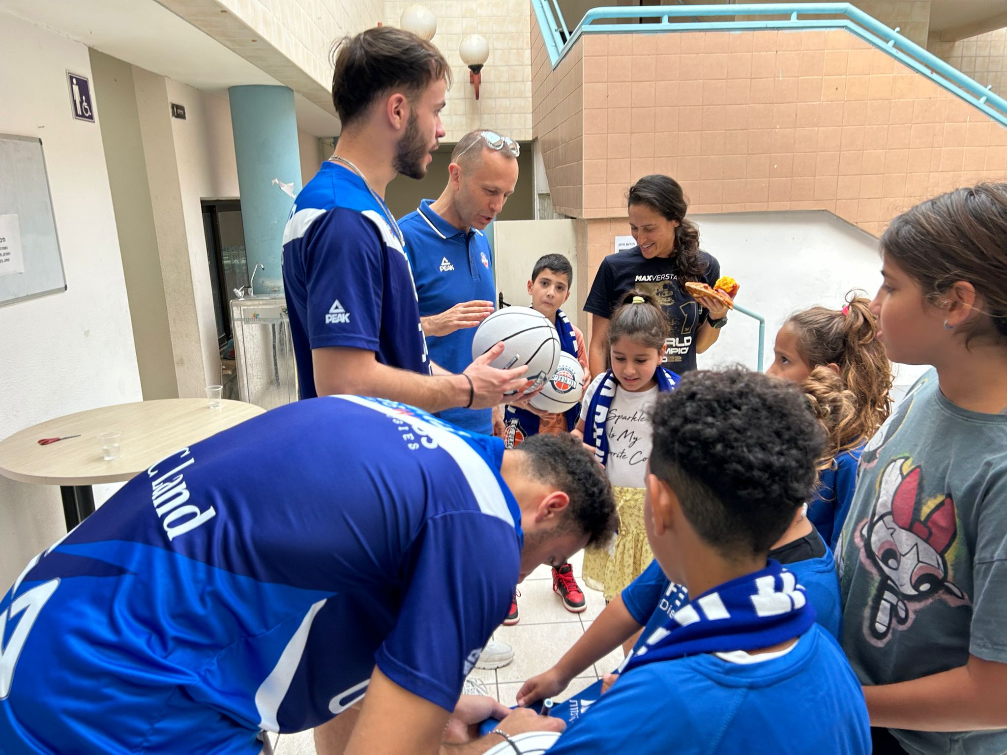 שחקני הקבוצה, איתן בורג, שוהם גת ואביתר מור יוסף יחד עם המאמן דן שמיר ועוזר המאמן גולן יבלונובסקי הגיעו לשחק עם הילדים, חילקו כדורים, צעיפים וחולצות.