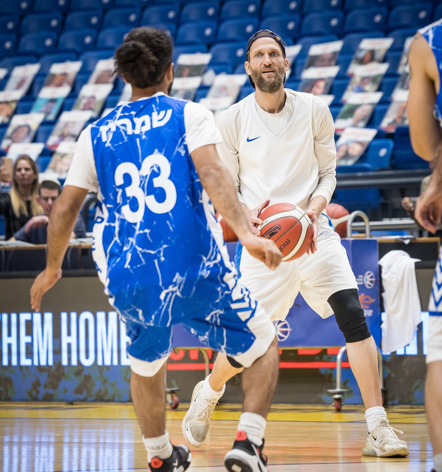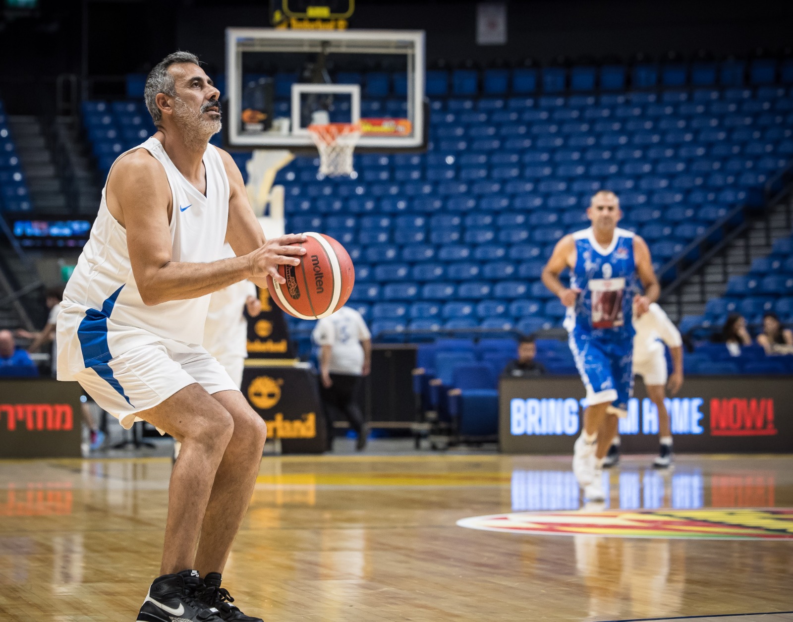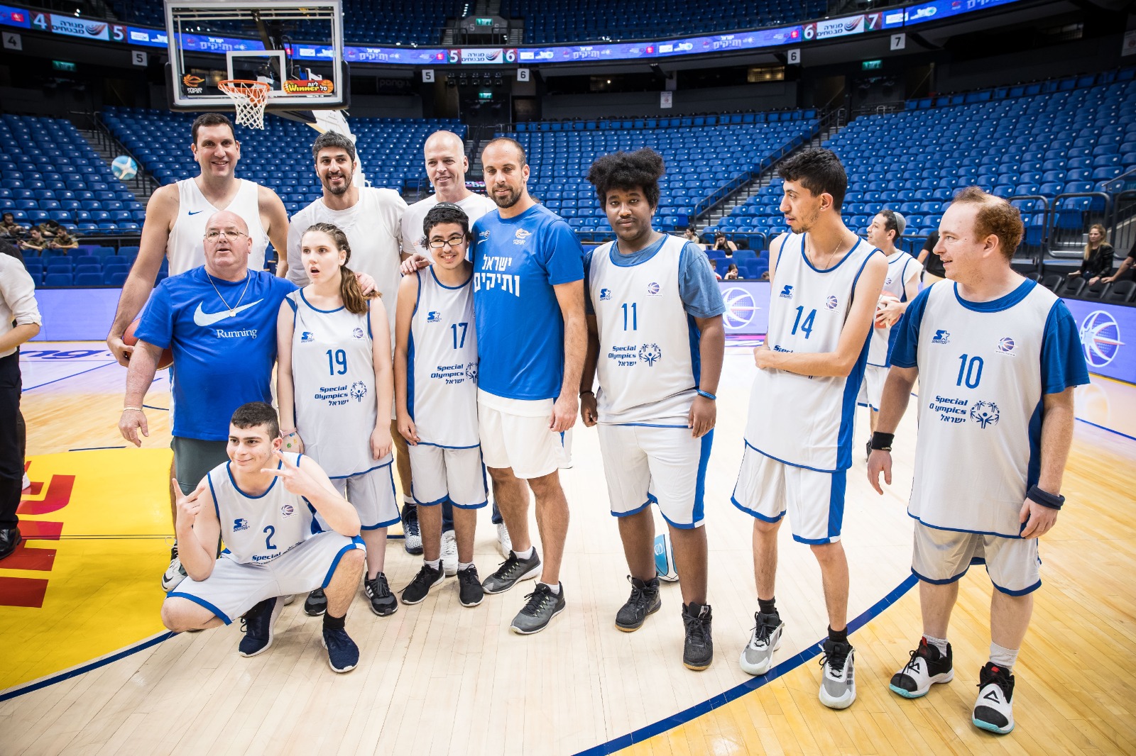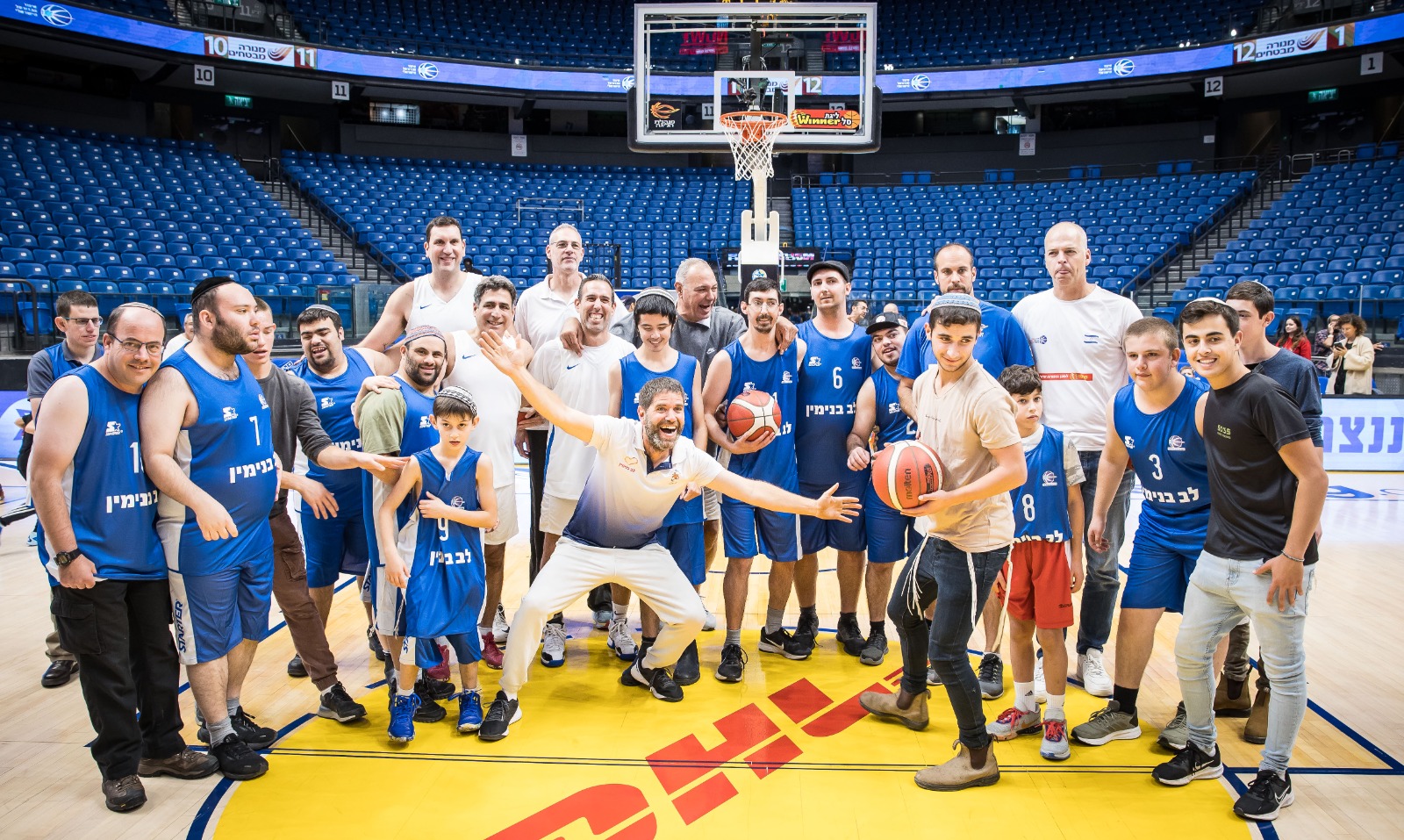 נבחרת הוותיקים ערכה אירוע חנוכה מיוחד, שכלל משחק מול נבחרת העוטף ופעילות של בעלי צרכים מיוחדים והספיישל אולימפיקס (צילום: עודד קרני, איגוד הכדורסל)