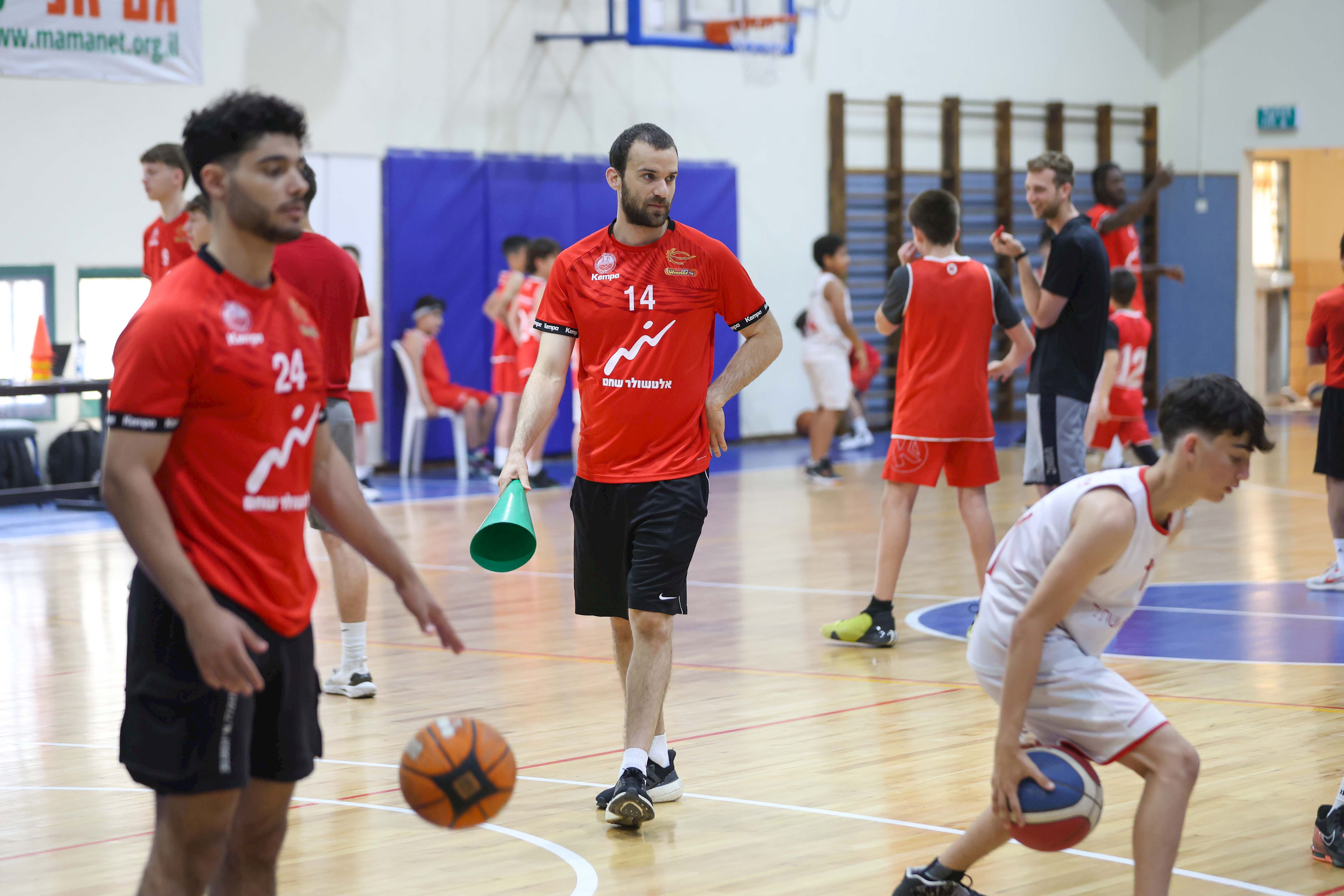 הפועל "אלטשולר שחם" באר שבע/דימונה ערכה אימון משותף עם מחלקת הנוער, במיזם "הטוטו למען הספורט בישראל". שוכמן: "זכות גדולה" (צילום: לירון מולדובן)