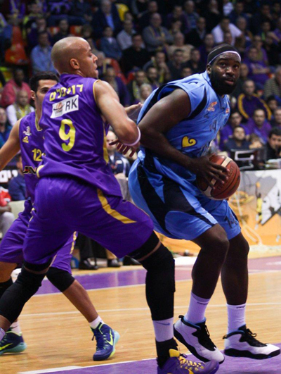 נמרוד טישמן בדרך לסל באין מפריע (צילום: לירון מולדובן)