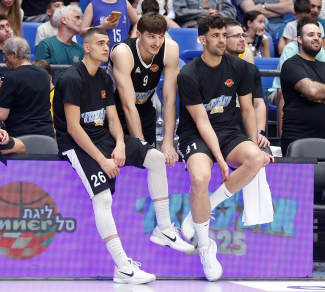 גינת, סורקין ומדר. ביומיום יריבים משני צדי העיר, היום שיחקו יחד (צילום: אלן שיבר)