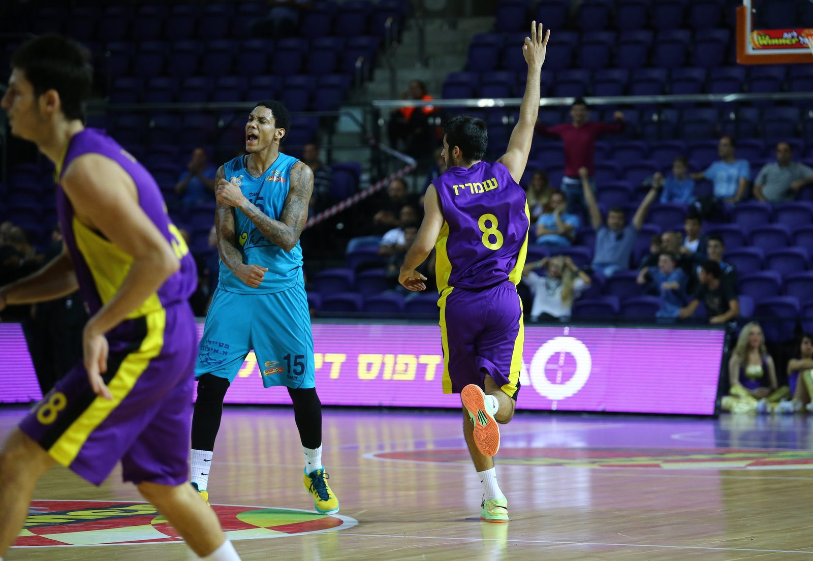 שמריז חוגג אחרי עוד שלשה (צילום: לירון מולדובן)