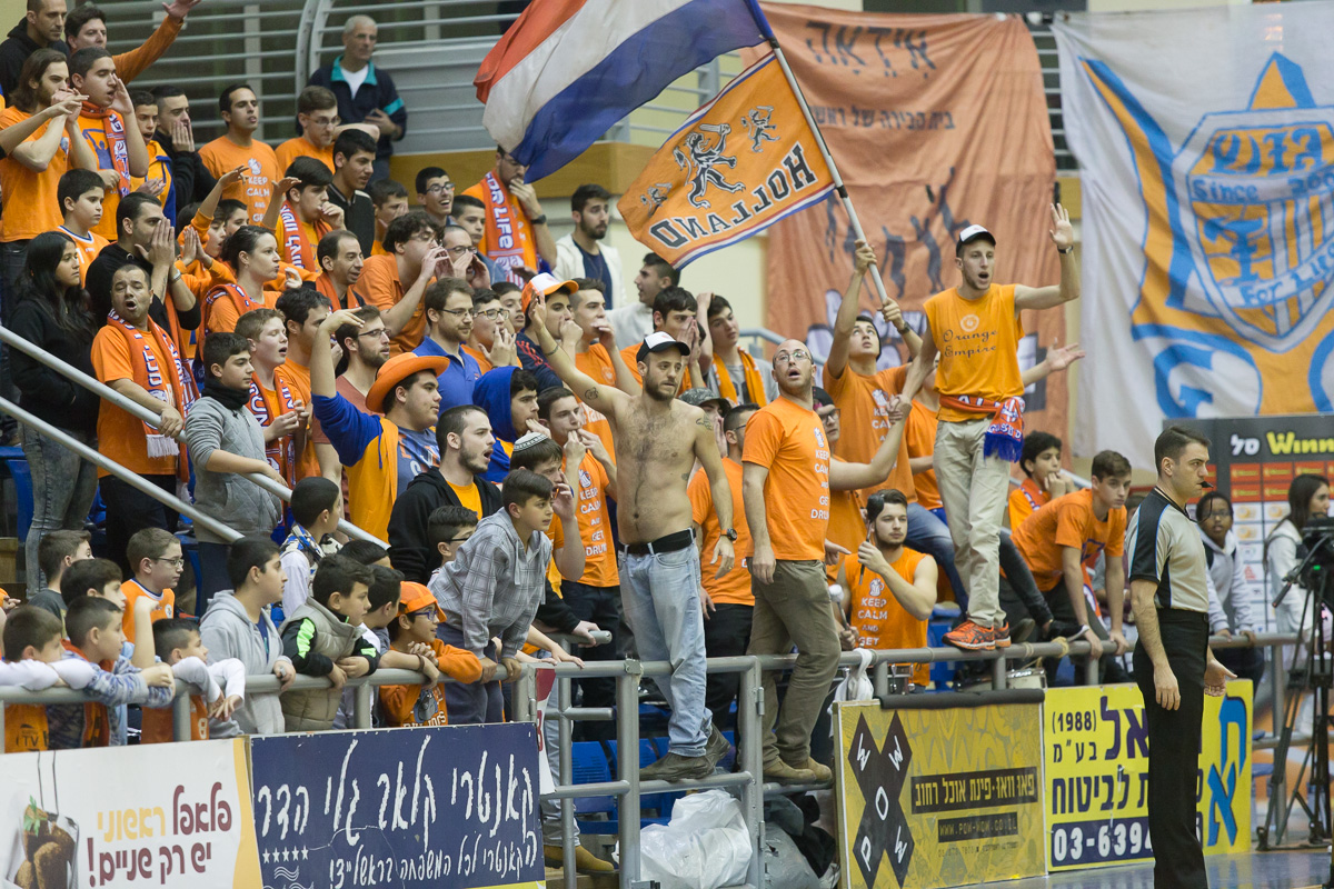 האוהדים הכתומים חוגגים ניצחון גדול (צילום: עודד קרני, מכבי ראשל"צ)