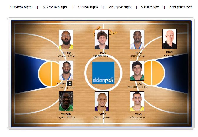 פרידמן לקח הימור מעניין כאשר הציב את קמרון קלארק כקפטן שלו, וקיבל ממנו רבע אחרון מדהים של 18 נקודות שהבטיח לעירוני נהריה ניצחון. בסך הכל, הפורוורד הסגול היה שווה לו 78 נקודות מדד וכדורסל חדש ליד. פרידמן הלך עם רמי הדר כמאמן ועם ג'ון דיברתולומיאו ורג'ינלד באקנר, שאספו יחד 46 נקודות בניצחון של מכבי חיפה על בני הרצליה בהארכה. משלימים את הקבוצה: צ'ארלס תומאס (32 נקודות), אייזק רוזפלט (20), מייקל אומה (15), רם אליאס-פור (5) ויהוא אורלנד (5).