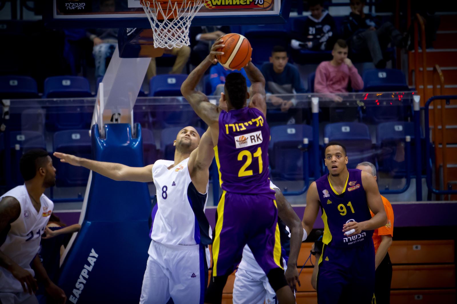 קלייבורן קולע מעל אסנטי. רבע שני נהדר שלו (צילום: דודי אוחיון)