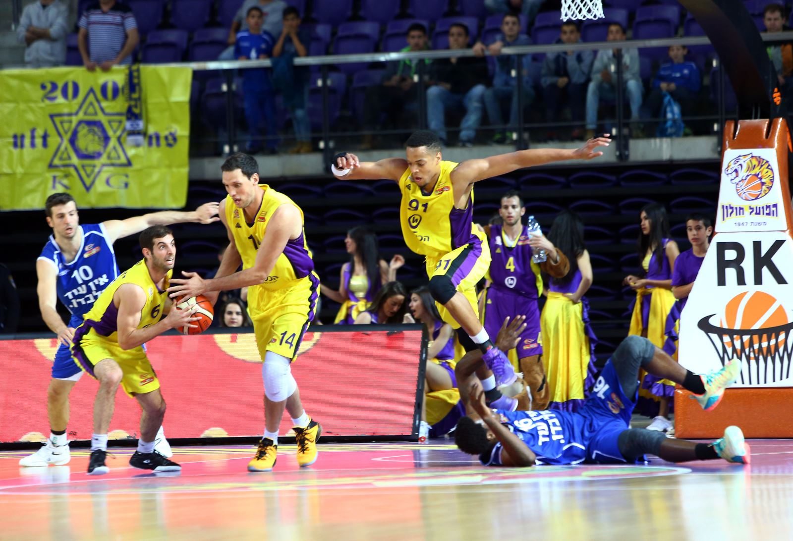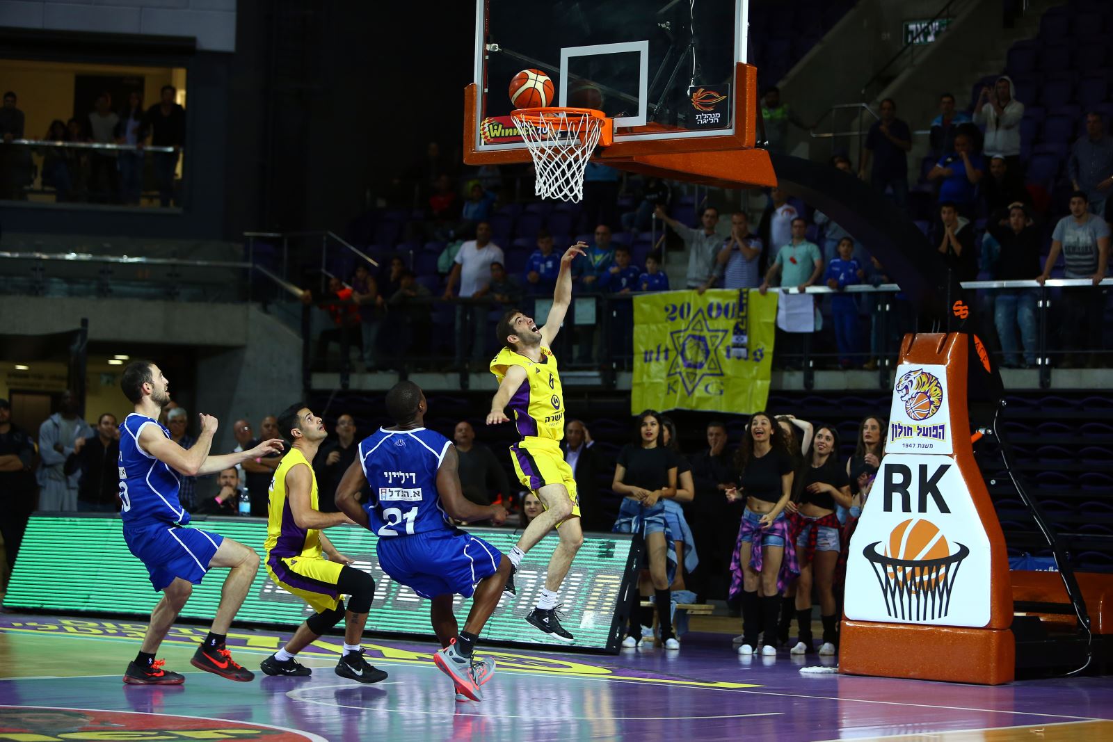 סל ניצחון דרמטי של גוני יזרעאלי העניק להפועל "הכשרה ביטוח" חולון 84:86 על מכבי קריית גת. מרקו קילינגסוורת' הורחק (צילום: אודי ציטיאט)