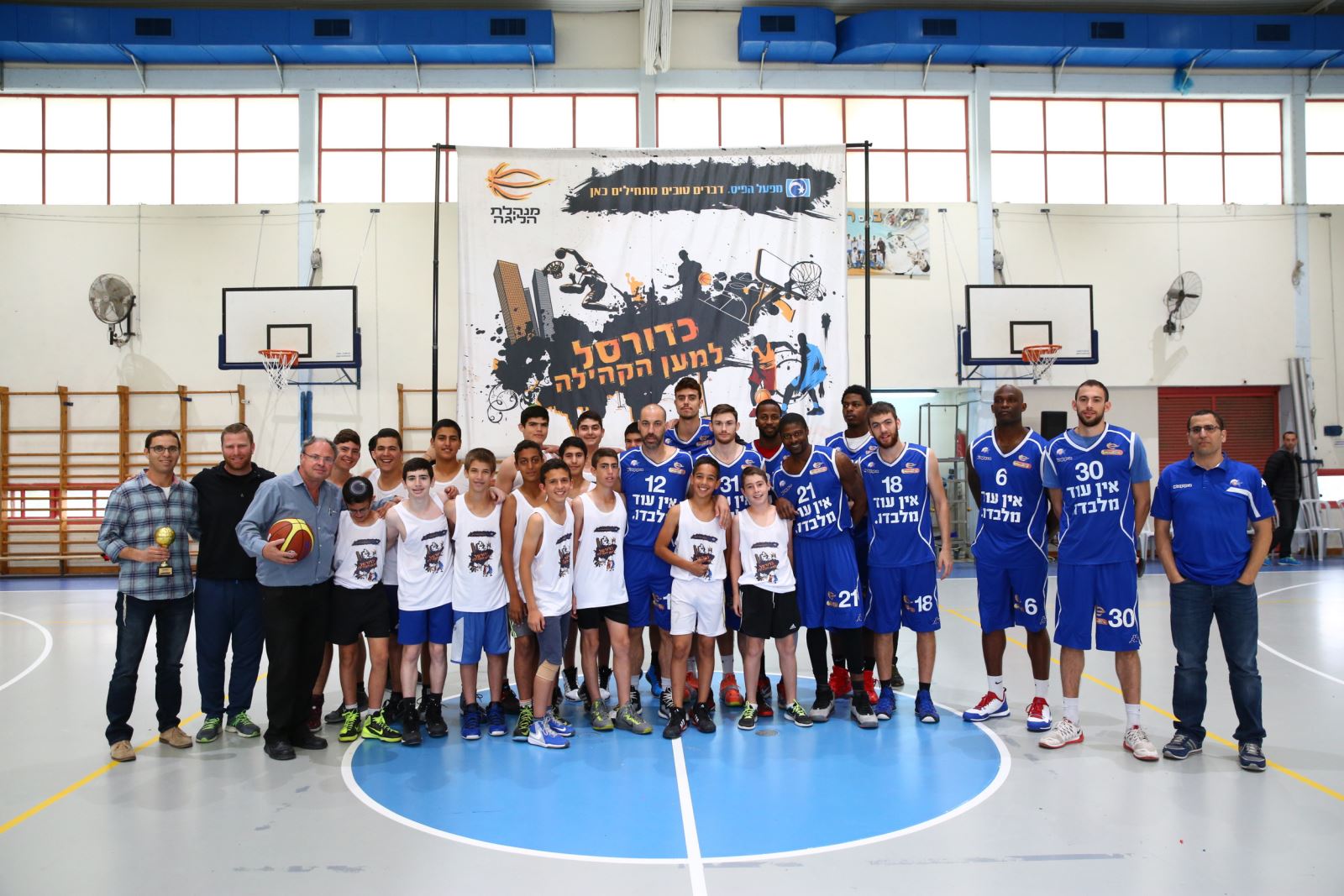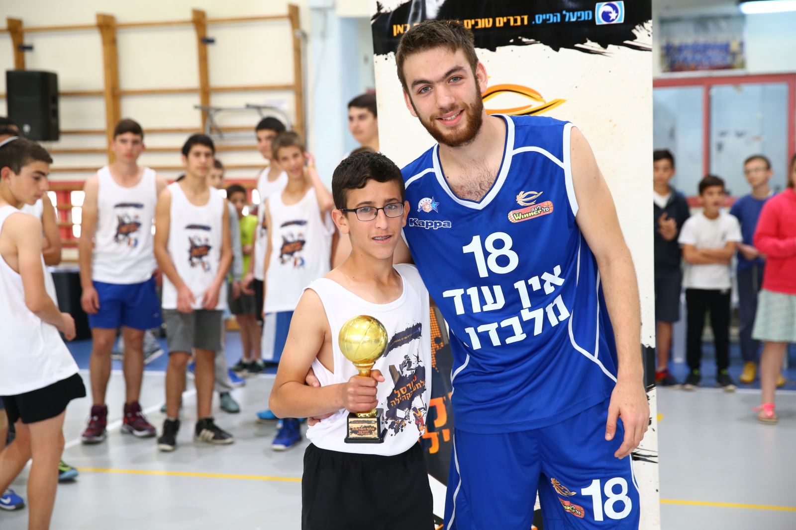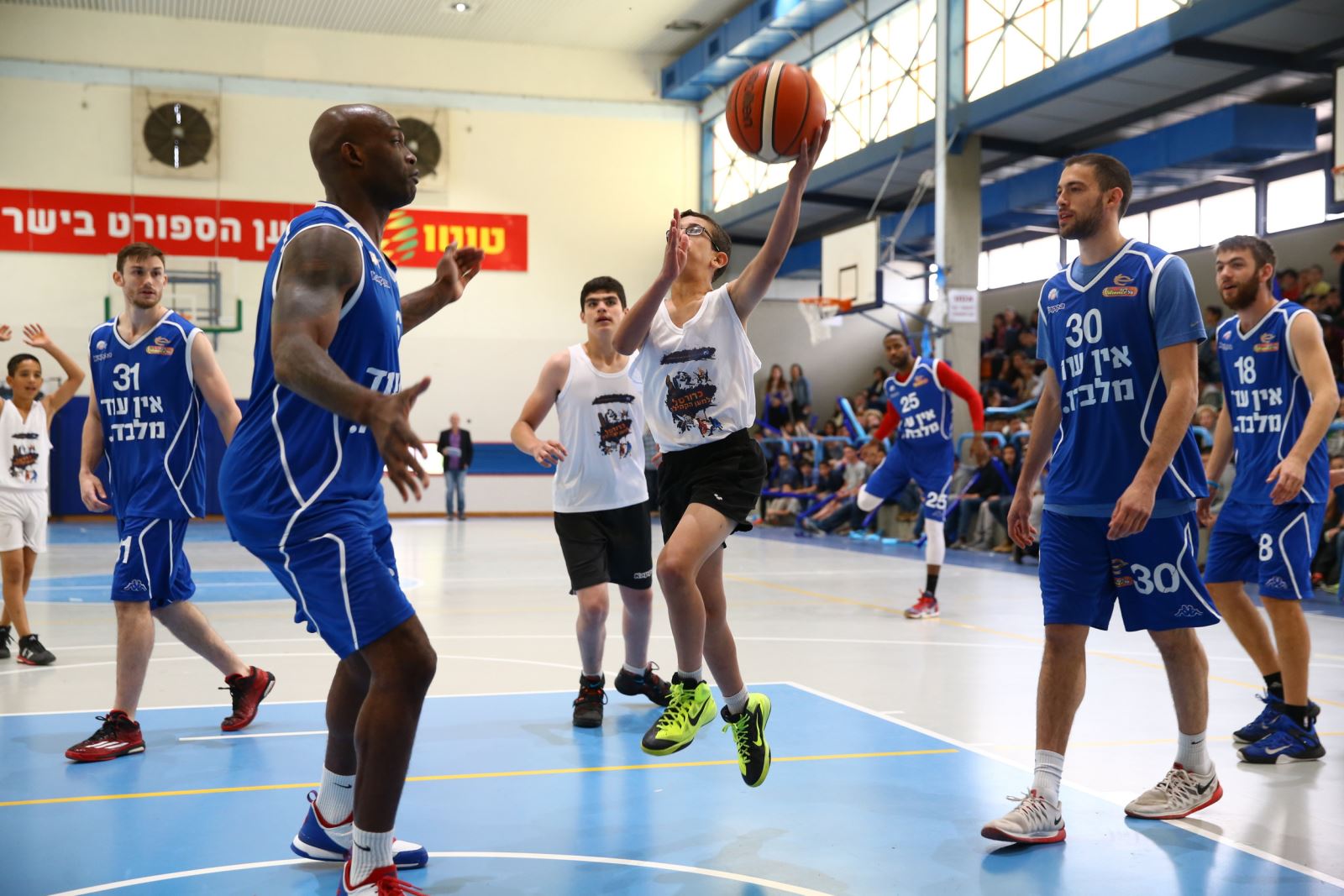 ליעד משען הגיע עם מכבי קריית גת לתיכון בו הוא לומד בקבוצת יבנה, במסגרת מיזם "כדורסל למען הקהילה". טישמן: "כיף גדול" (צילום: לירון מולדובן)
