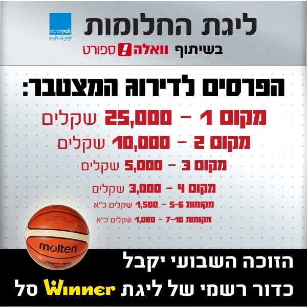 הזוכה בליגת החלומות "אלדן" ייזכה ב-25 אלף שקלים, סגנו יאסוף 10,000 שקלים והמקום השלישי ייקח הביתה 5,000 שקלים. גם שאר המתחרים שיסיימו בין עשרת המובילים לא יישארו מקופחים וייזכו בפרסים שינועו בין 1,000 ל-3,000 שקלים.