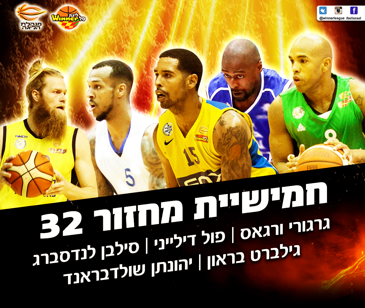 לצידו בחמישייה: גרגורי ורגאס שנעל את מכבי "Hunter" חיפה במקום השלישי עם 17 נקודות, 4 אסיסטים ומדד 24 בניצחון החשוב על הפועל "פתאל" אילת; סילבן לנדסברג שהיה כוכב ההצגה של מכבי "FOX" ת"א בדרבי נגד הפועל "SP מצרפלס" ת"א עם 21 נקודות ב-16 דקות בלבד; גילברט בראון שעזר לעירוני נהריה להבטיח את יתרון הביתיות ברבע הגמר עם 24 נקודות ומדד 29 נגד מכבי "ראנד מדיה" ראשל"צ; ויהונתן שולדבראנד, שנשאר בליגה עם מכבי אשדוד/באר טוביה אחרי שקלע 22 נקודות (8 מ-9 מהשדה) בניצחון על עירוני "דיזנגוף סחר" נס ציונה.
