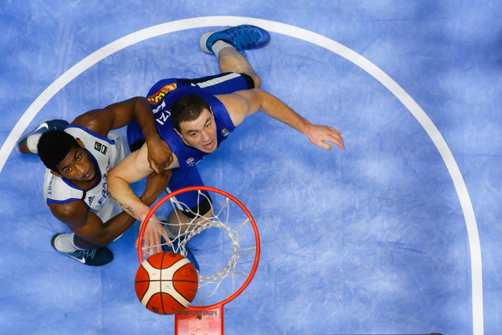 בקרב מתחת לסלים. "מאמין שאוכל לשחק בעתיד גם כגארד" (צילום: FIBA.COM)