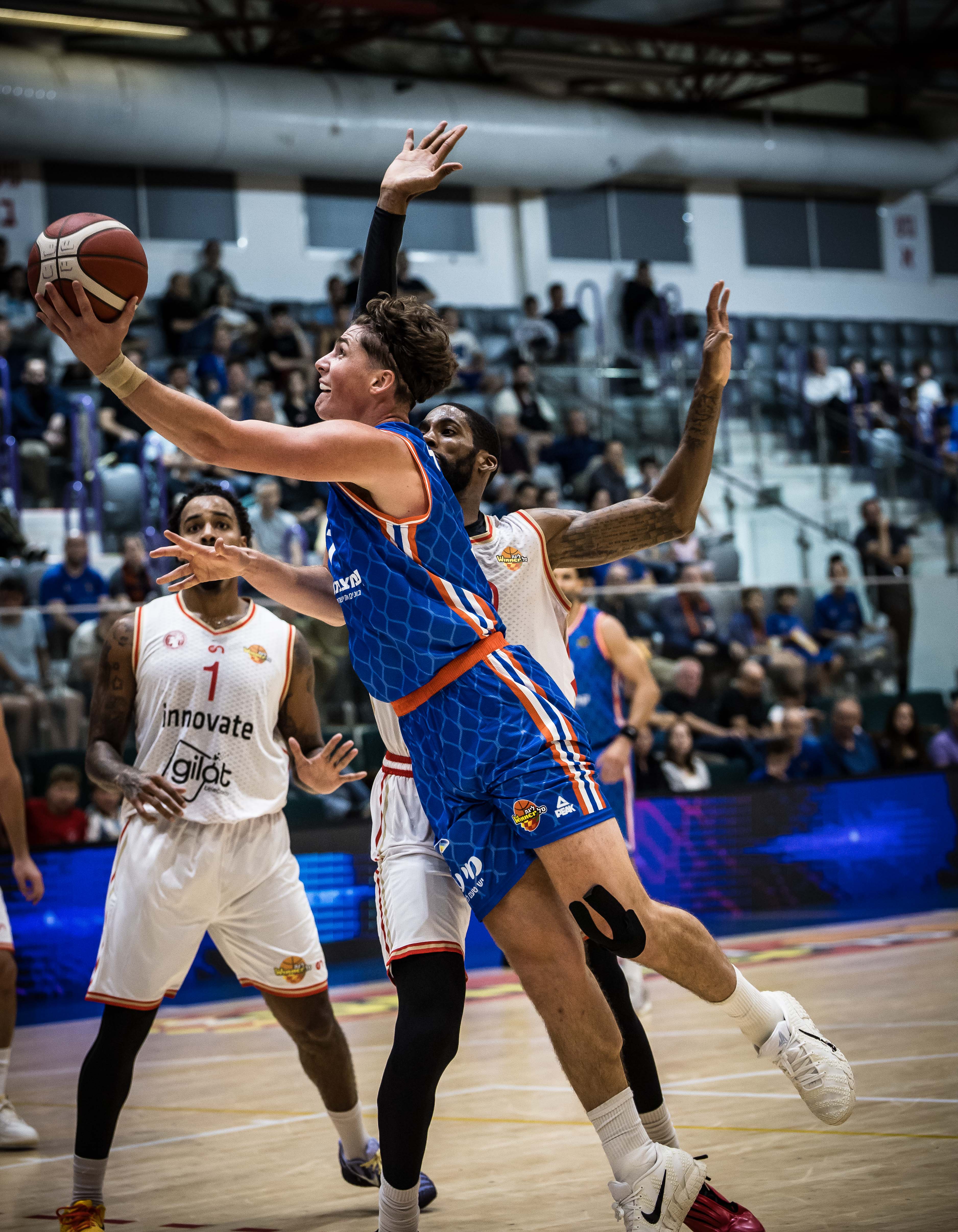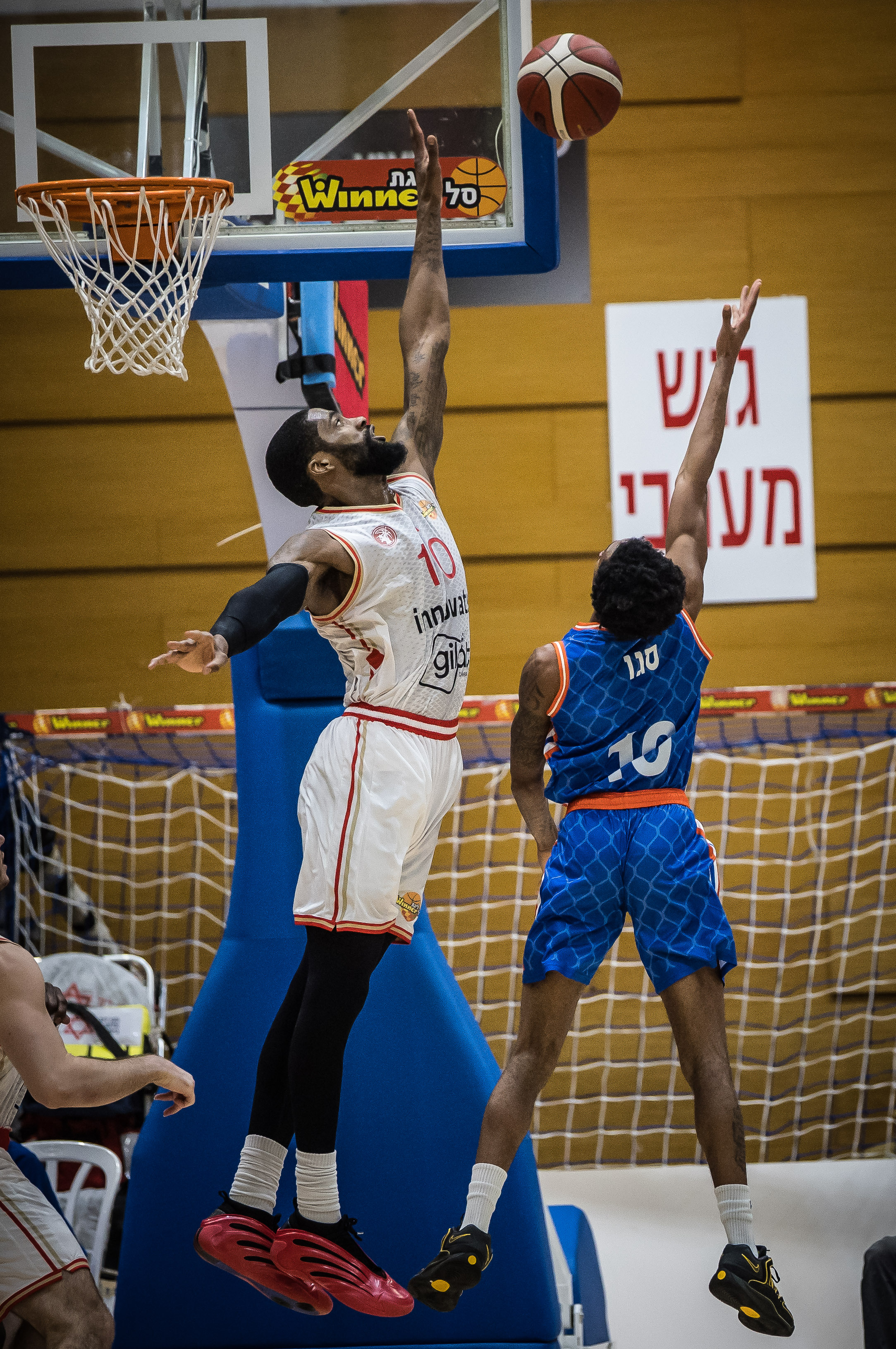 צ'יילדס חוסם את סגו. האורחת שיחקה הגנה נהדרת (צילום: עודד קרני)