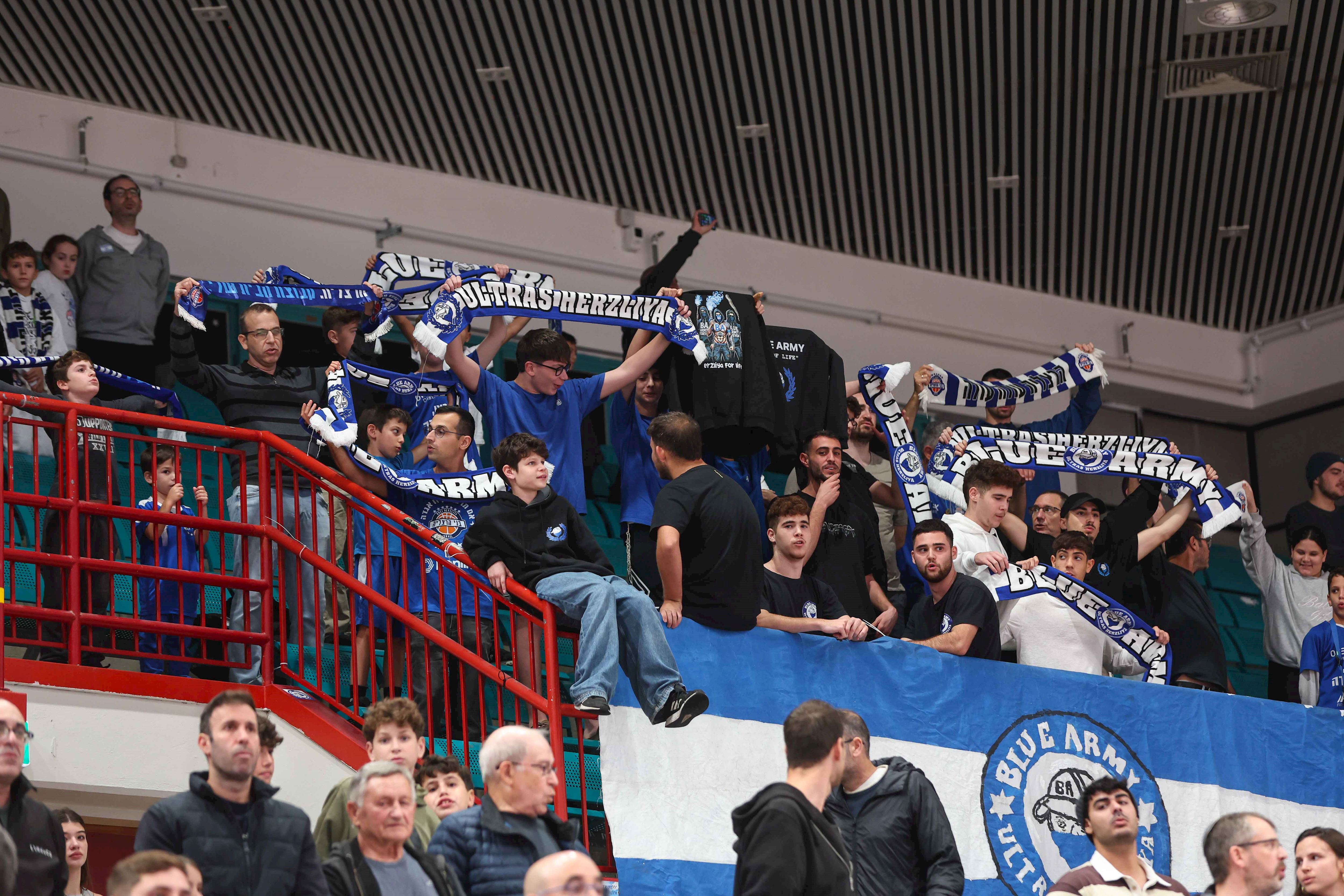אוהדי רעננה הגיעו לאולם מטרווסט (צילום: לירון מולדובן)