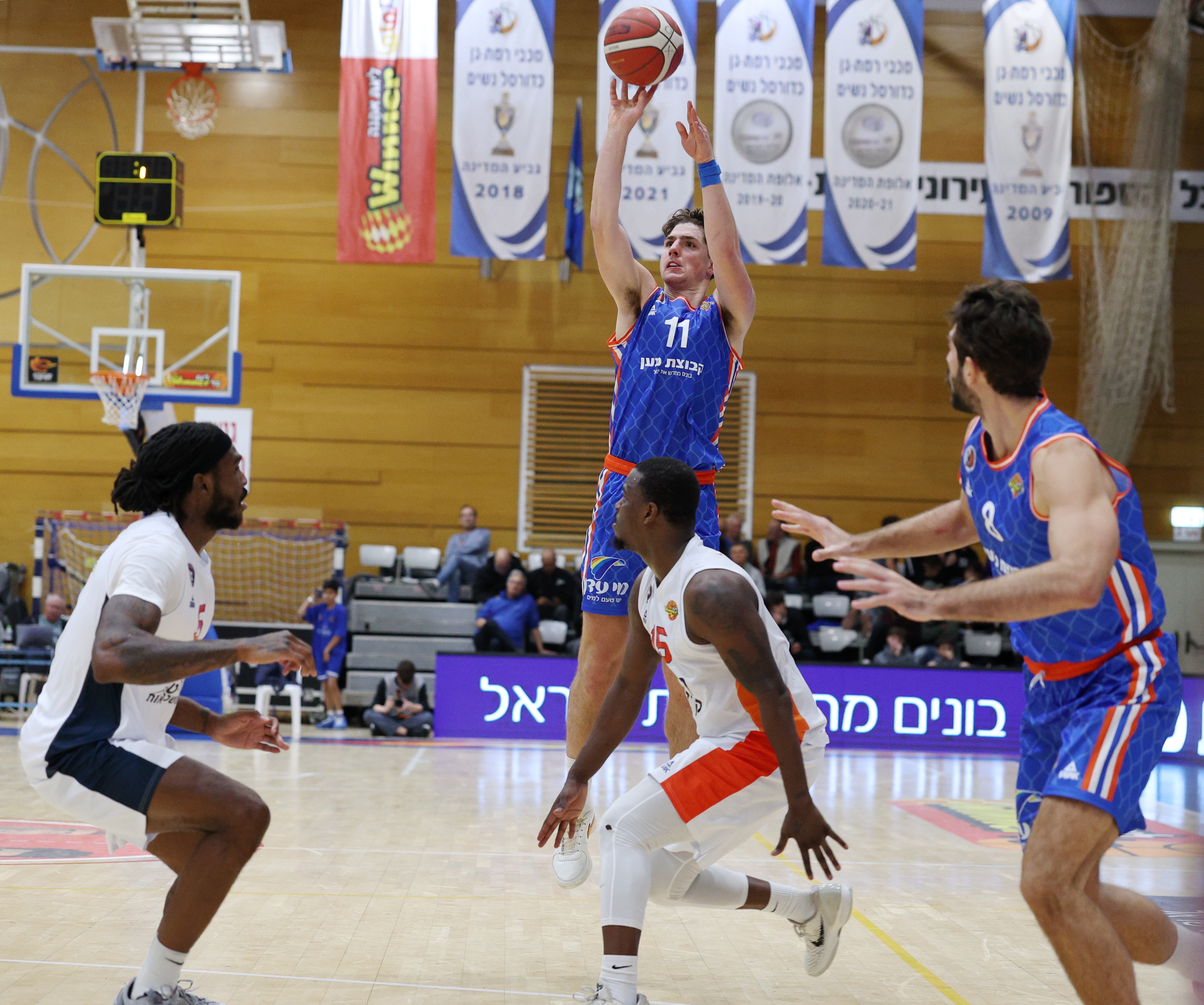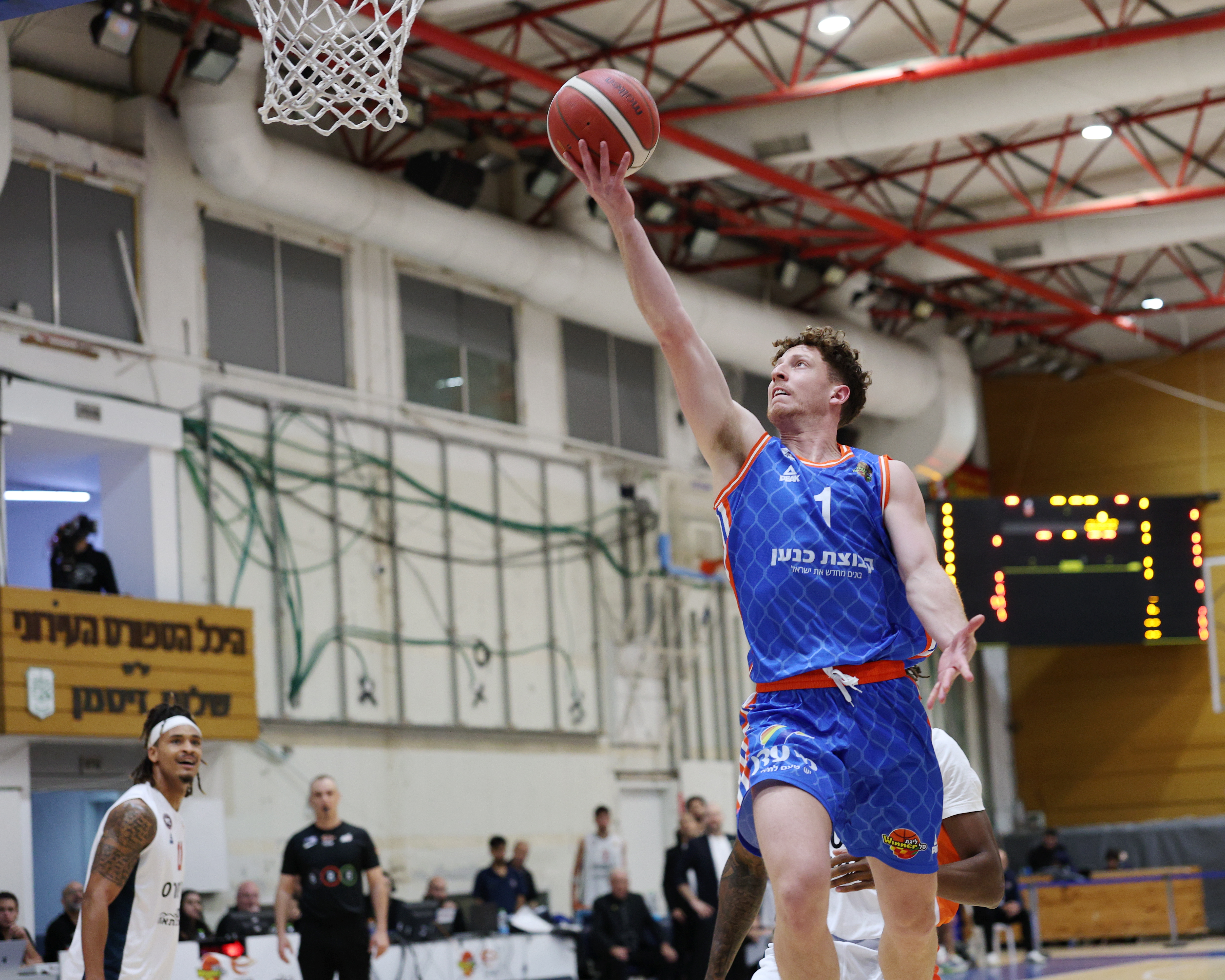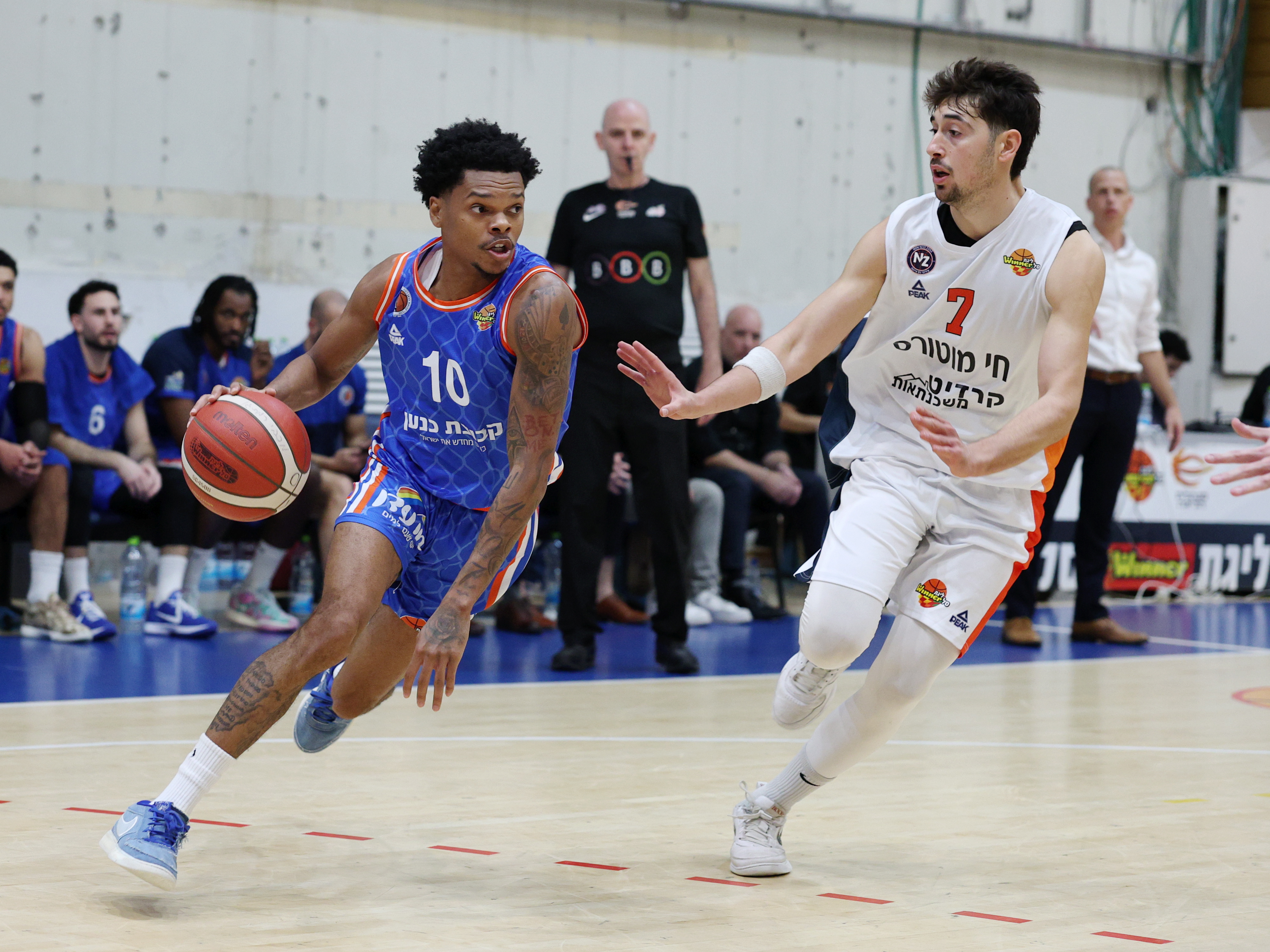הקפטן צלף 27 נקודות, הרכז סיפק 21 נק' ו-13 אסיסטים ומכבי "קבוצת כנען" רמת גן התאוששה עם 83:100 בזיסמן על עירוני "חי מוטורס" נס ציונה (צילום: אלן שיבר)