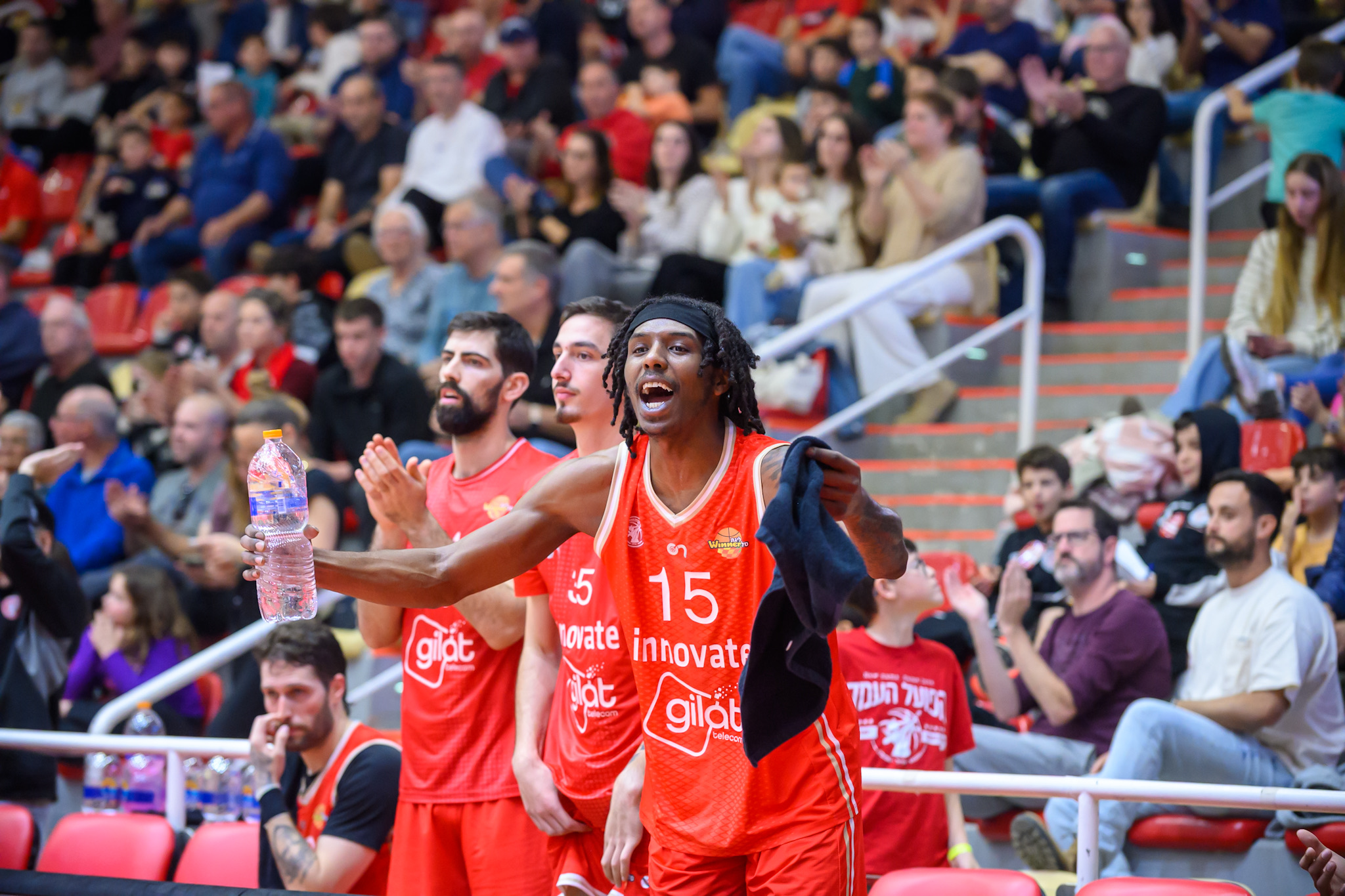 בספסל של הפועל העמק חגגו ניצחון שלישי רצוף (צילום: נועם מושקוביץ')