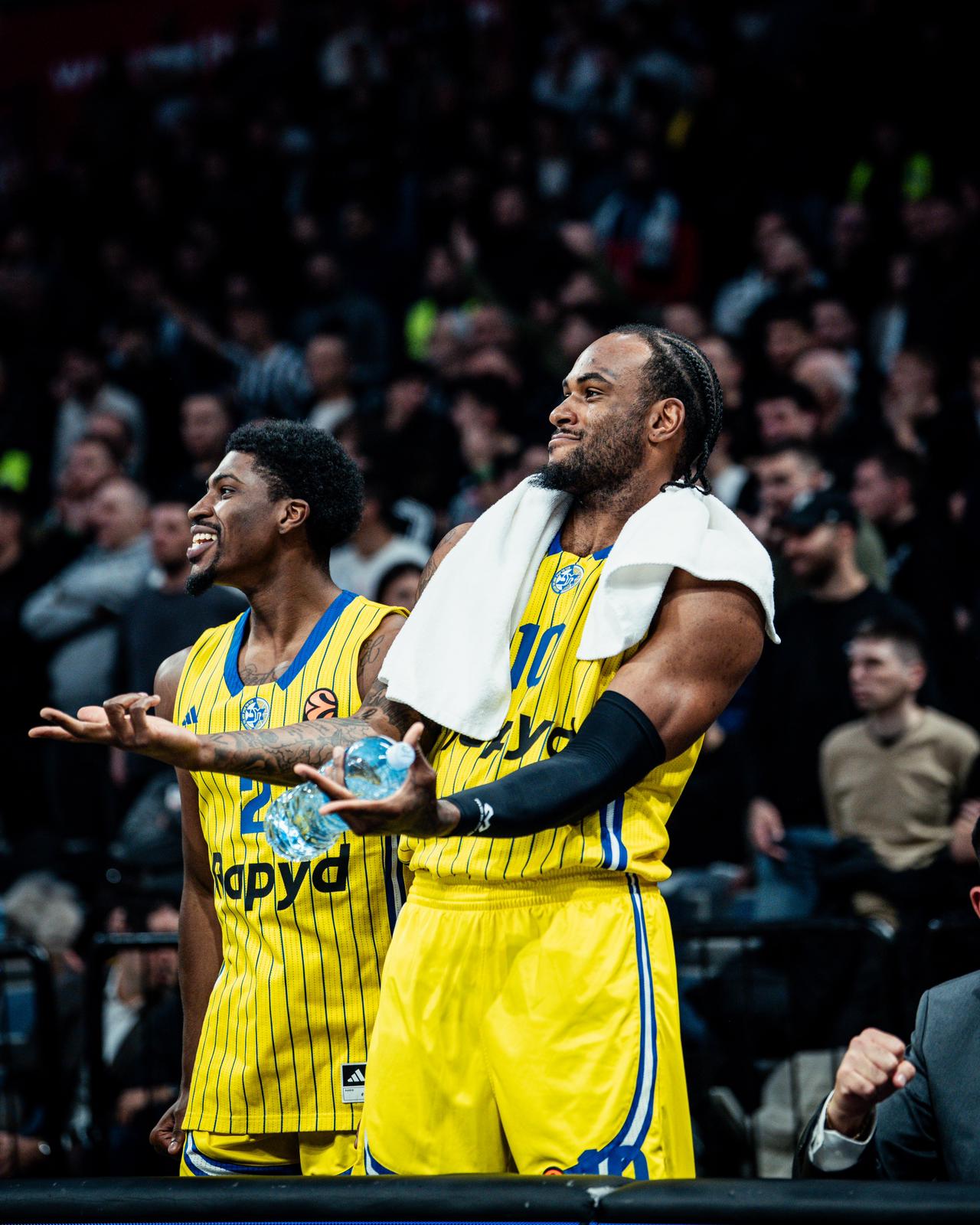 הצהובים נהנו מכל רגע הערב בבלגרד (צילום: מכבי "Rapyd" תל אביב)