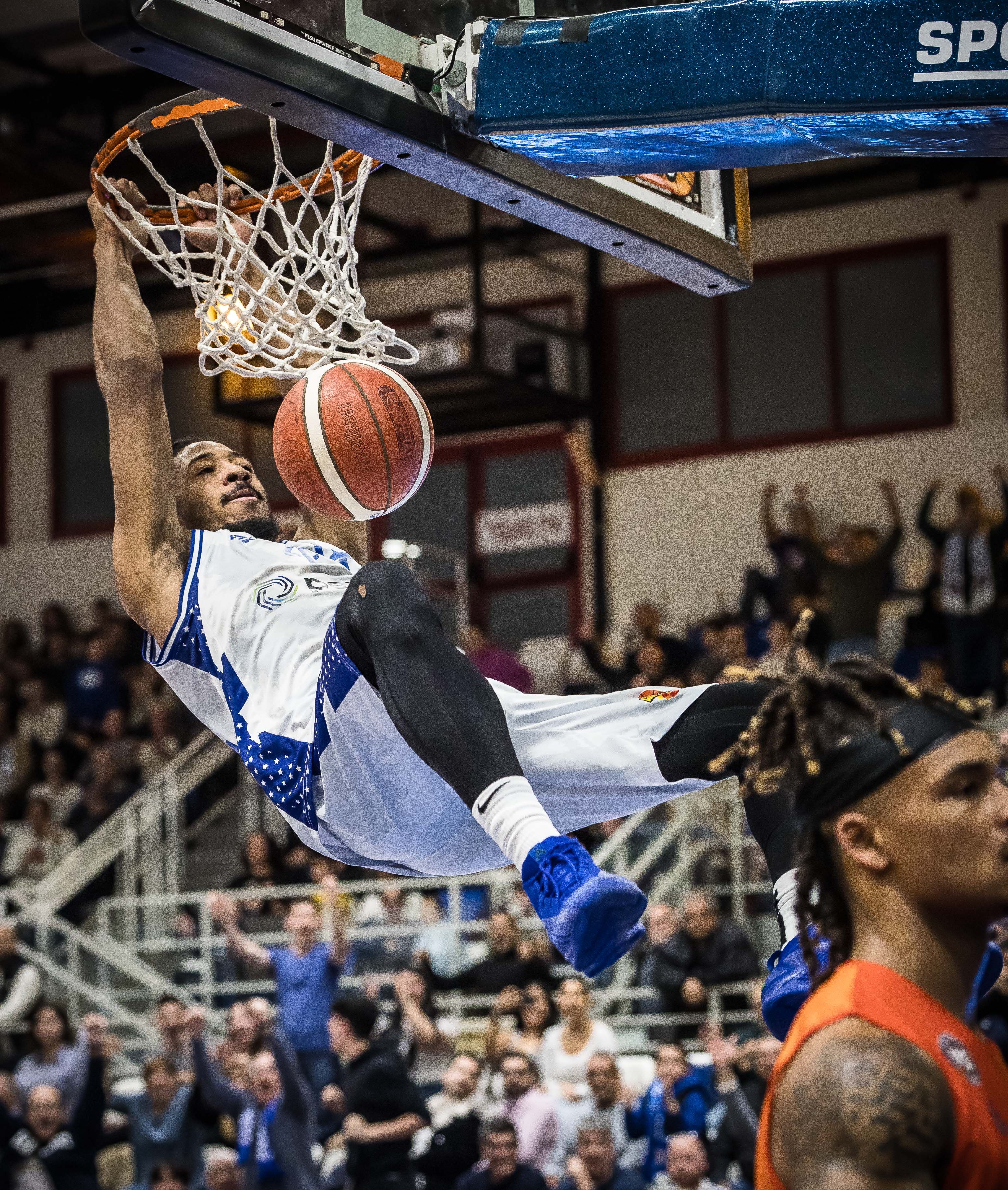 סטיוארט. הדאנק הזה היה חלק מהבריחה ברבע האחרון (צילום: עודד קרני)