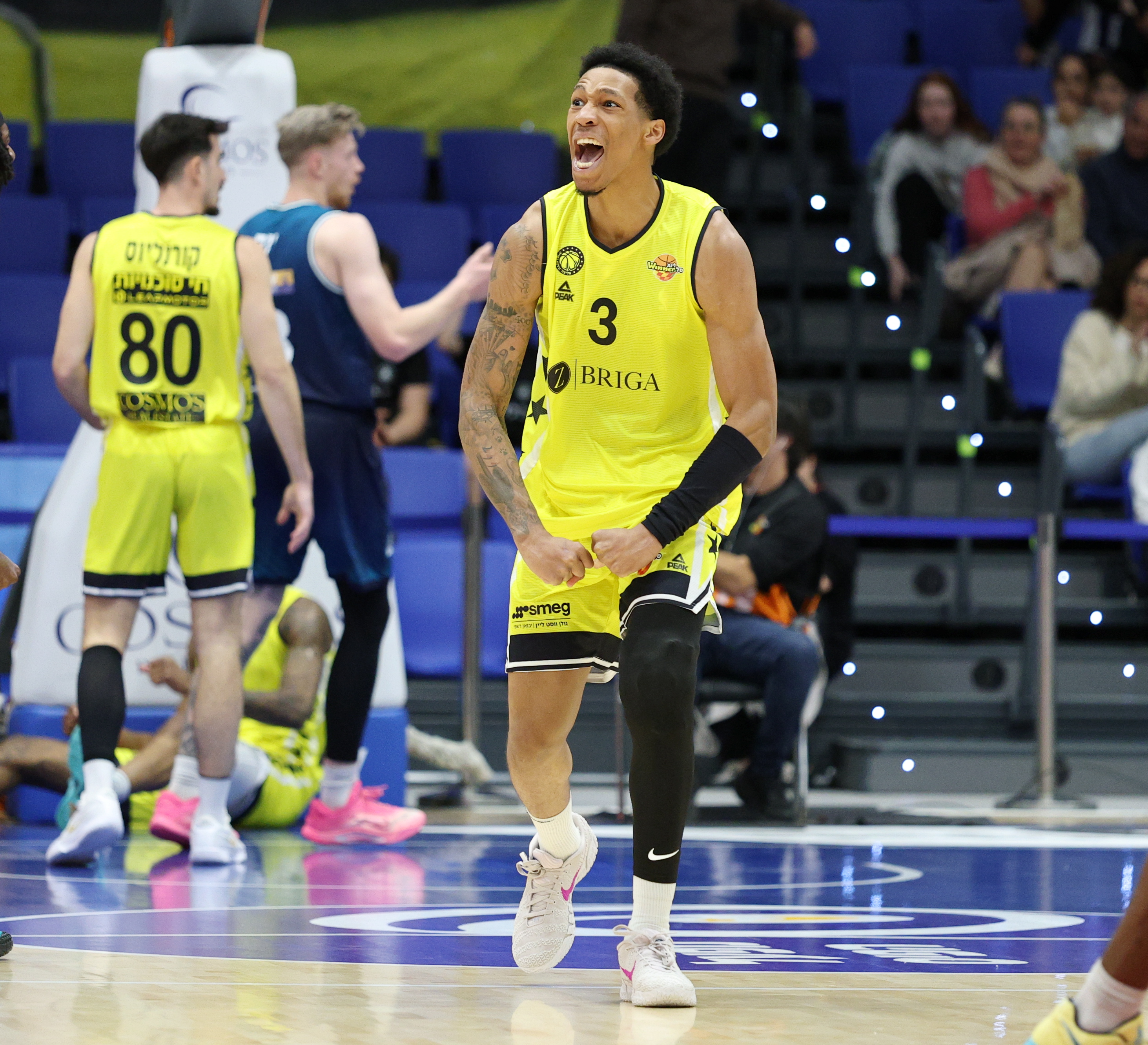 גרשון. צלף חמש שלשות עבור הצהובים-שחורים (צילום: אלן שיבר)