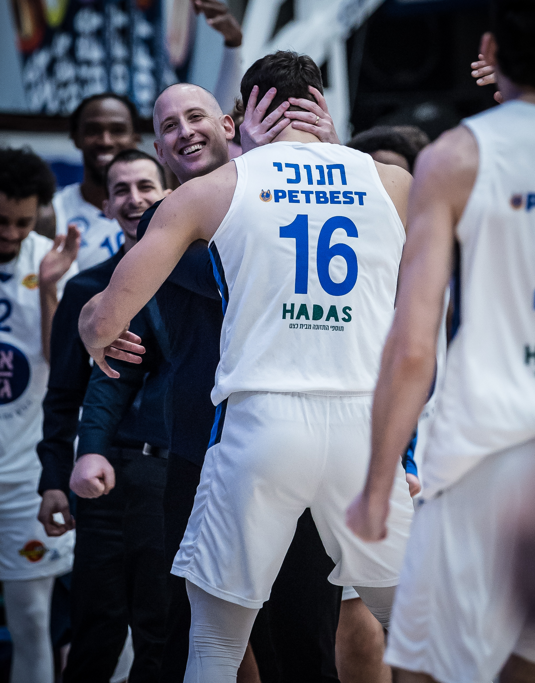 סגלוביץ מפרגן לאחד מגיבורי הערב (צילום: עודד קרני)