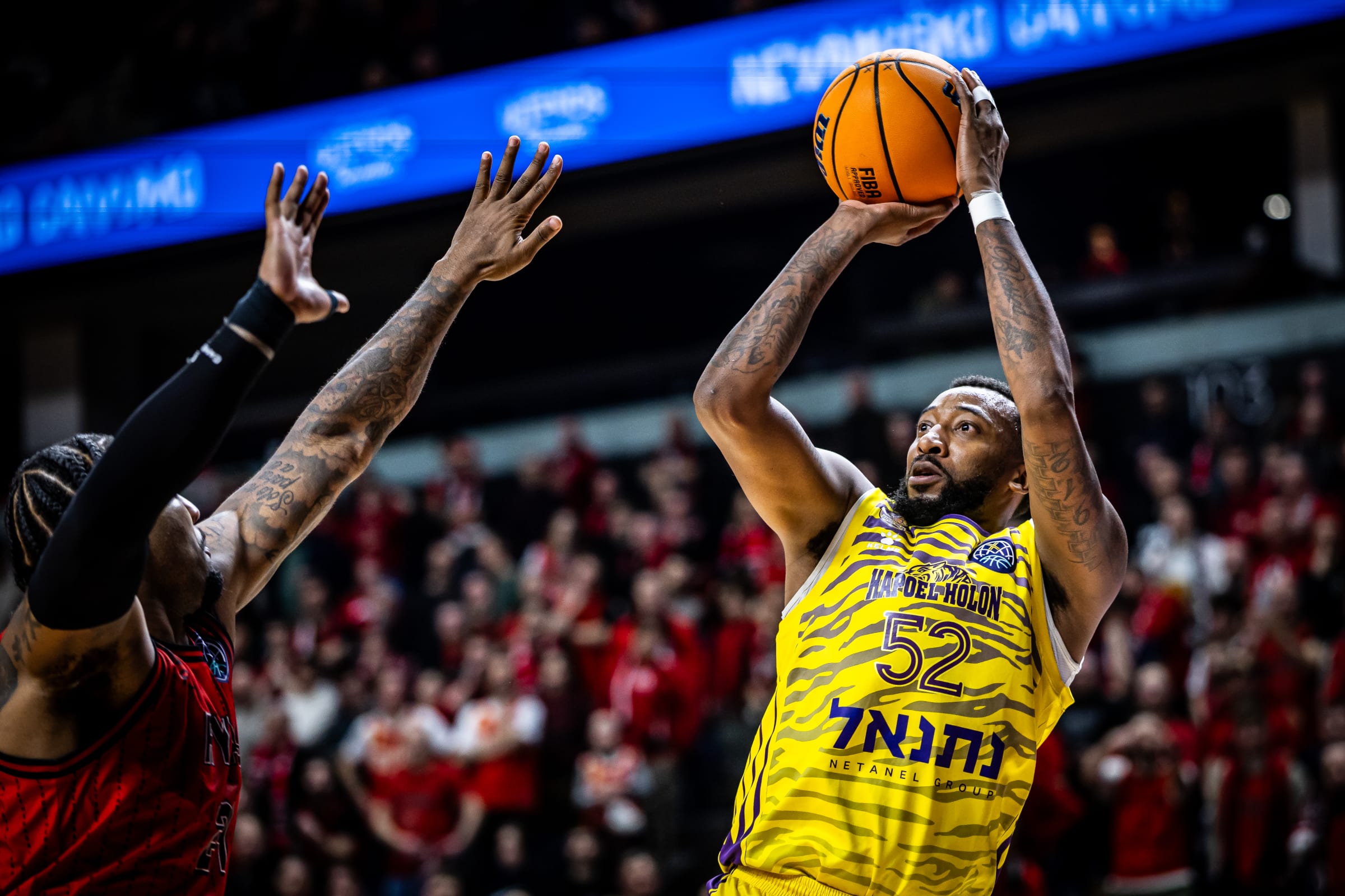 הפועל "נתנאל" חולון נכנעה 106:81 בחוץ לריטאס וילנה בערב שבו פיגרה בשיא ב-30 הפרש. 23 למנפורד, סאנוגו ערך בכורה (צילום: FIBA.BASKETBALL)
