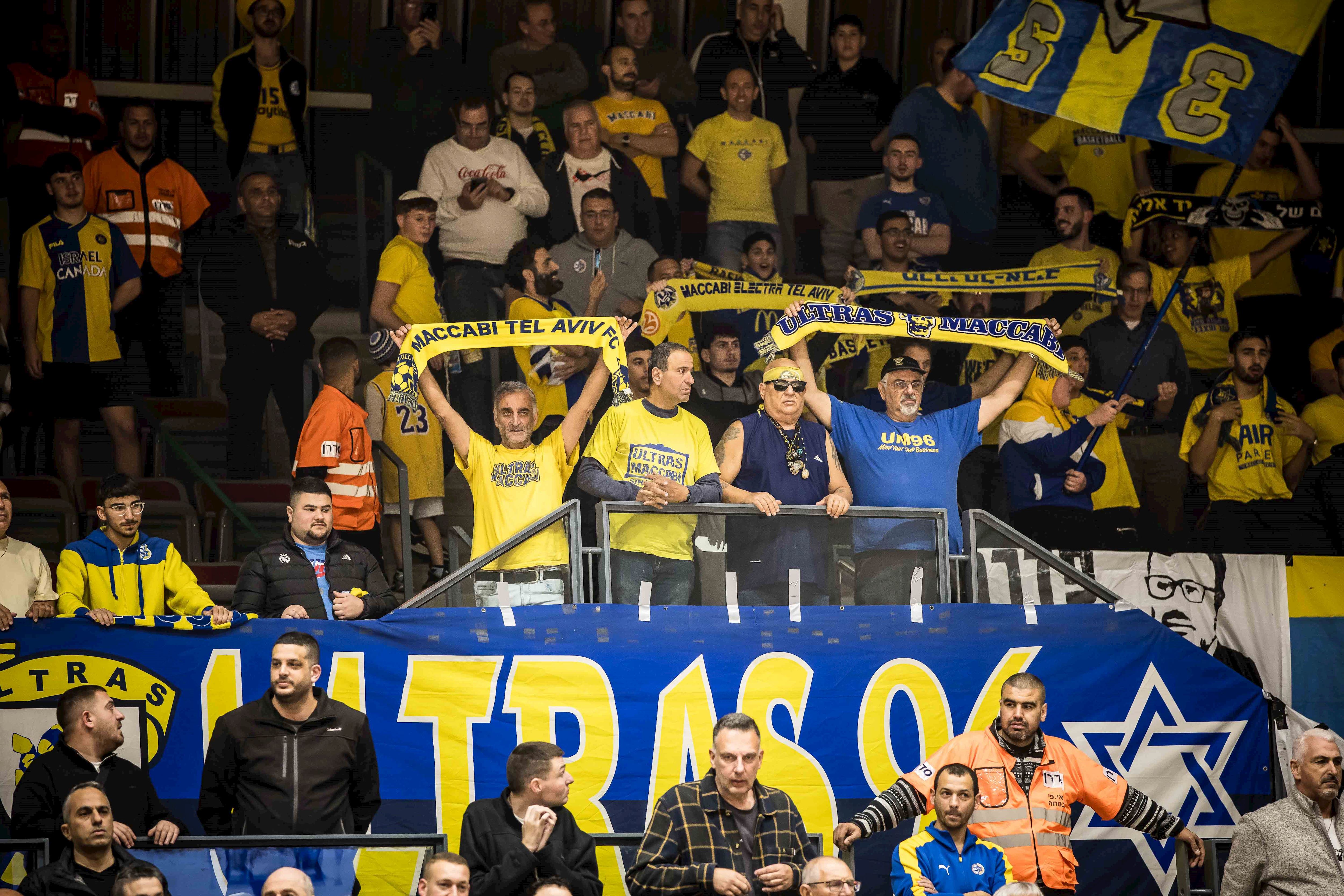 הקהל הצהוב סיפק אווירה חמה במשחק חוץ (צילום: עודד קרני, איגוד הכדורסל)
