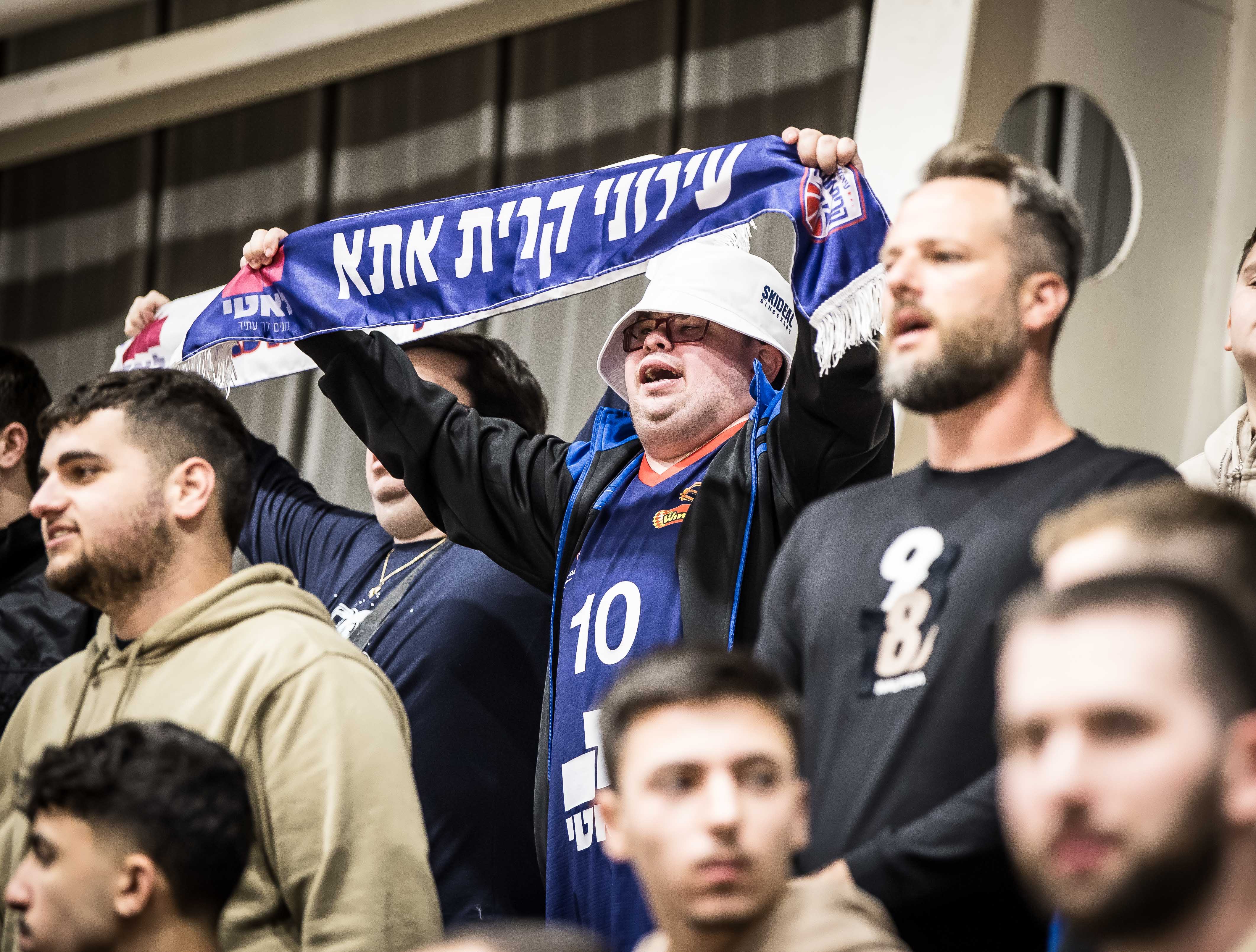אוהדי קריית אתא. מילאו את האולם הביתי (צילום: עודד קרני, איגוד הכדורסל)