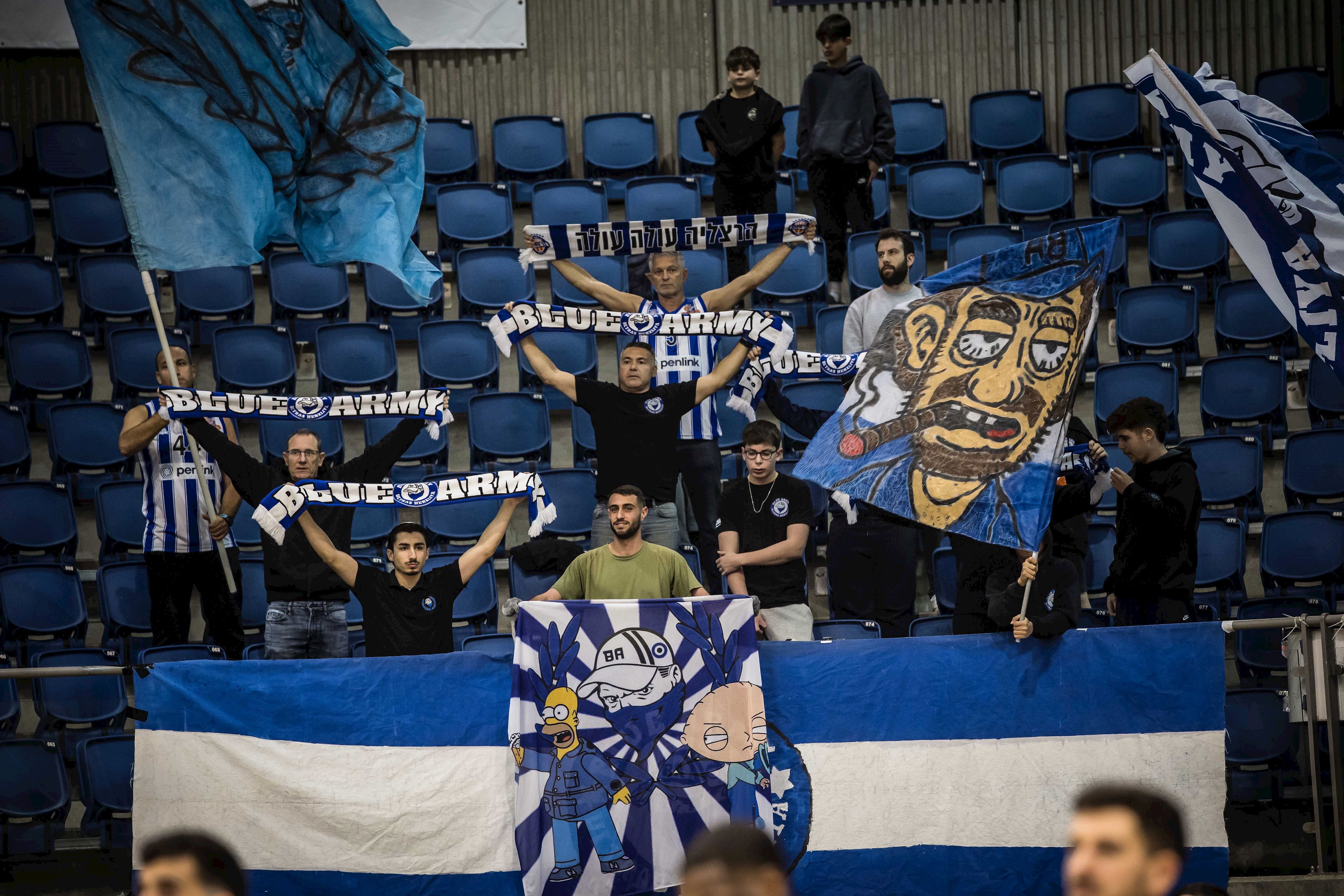 שני הקהלים הגיעו לקונכייה (צילומים: עודד קרני, איגוד הכדורסל)