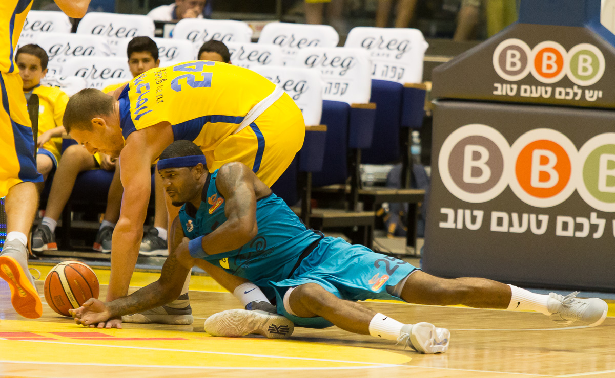 מילבורן ואייברסון יורדים לפרקט למאבק על כדור אבוד (צילום: עודד קרני)