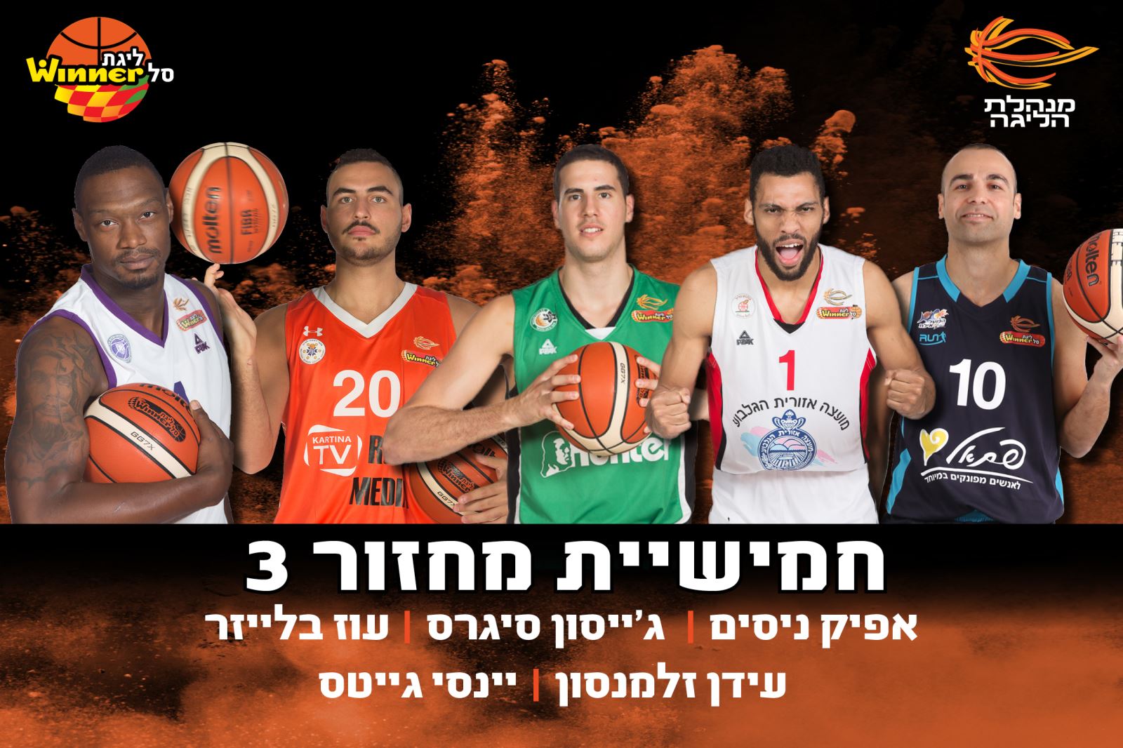 עוד בחמישייה: אפיק ניסים שהוביל את הפועל "פתאל" אילת לניצחון מרשים על הפועל "SP מצרפלס" ת"א עם 20 נקודות (4-4 לשתיים, 4-7 לשלוש) ו-4 אסיסטים; עוז בלייזר שקלע 10 מ-16 נקודותיו ברבע האחרון בדרך לניצחון הבכורה של מכבי "Hunter" חיפה העונה נגד מכבי קריית גת; עידן זלמנסון שקלע שיא קריירה של 17 נקודות (6-8 מהשדה, 5-6 מהקו) ב-16 דקות בלבד בניצחון מכבי "ראנד מדיה" ראשל"צ על בני הרצליה; ויינסי גייטס שרשם 19 נקודות, 7 ריבאונדים ו-5 אסיסטים בניצחון הבכורה של עירוני נהריה על מכבי "קפלן" אשדוד/באר טוביה.