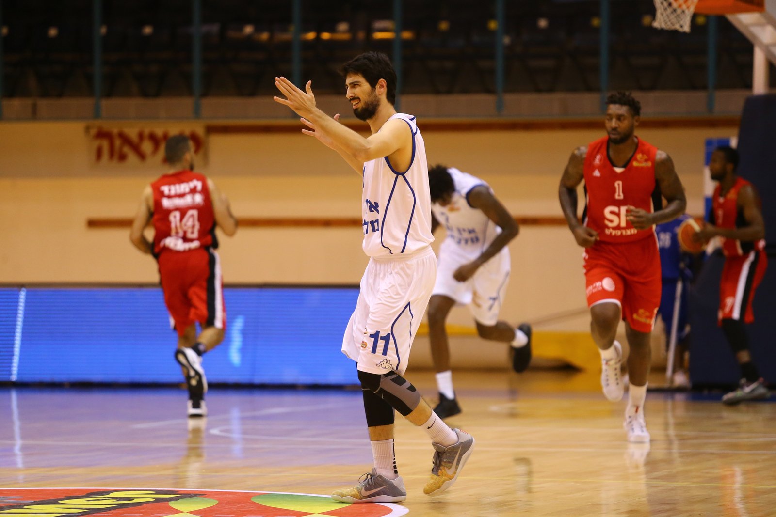 נתי כהן שלף שפן בדמות אלכס רוזנברג, שביחד עם טיישון טיילור סידר לקבוצה ניצחון 75:82 על הפועל "SP מצרפלס" ת"א (צילום: לירון מולדובן)